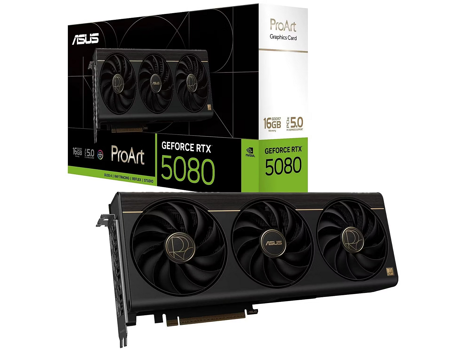 ShortSummaryDescription - ASUS ProArt -RTX5080-O16G, GeForce RTX 5080, 16 GB, GDDR7, 256 bit, 7680 x 4320 pixels, PCI Express 5.0