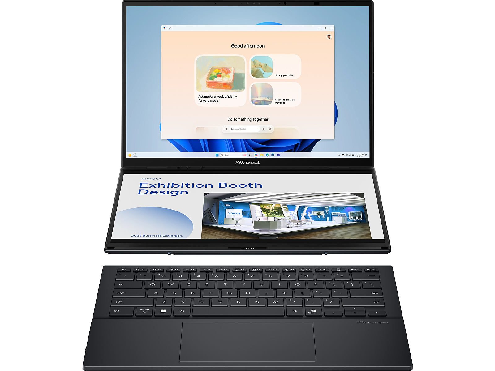 Asus Zenbook Duo UX8406CA-PZ068X | Basalt Gray | 14 " | OLED | Touchscreen | 3K | 2880 x 1800 pixels | Glossy | Intel Core Ultra 9 | 285H | 32 GB | LPDDR5X | Solid-state drive capacity 2000 GB | Intel Arc Graphics | Windows 11 Pro | 802.11be | Bluetooth v