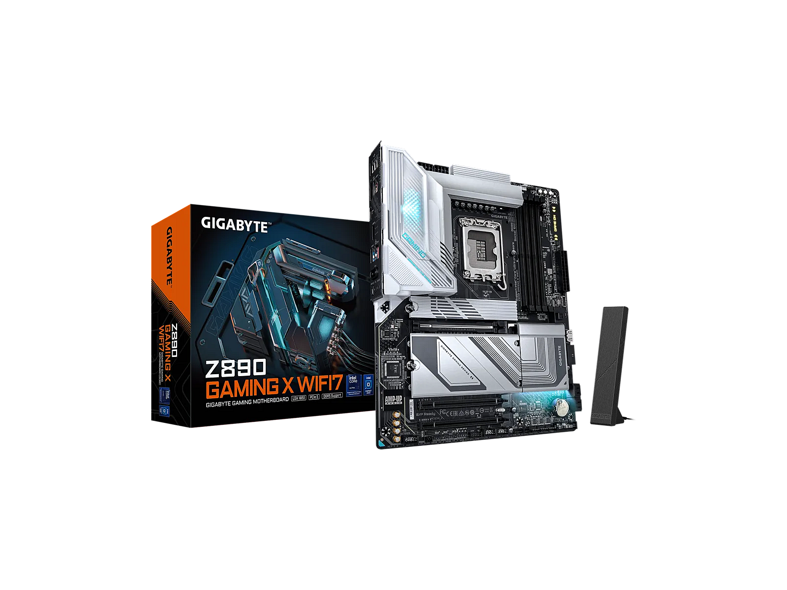 ShortSummaryDescription - GIGABYTE Z890 GAMING X WIFI7 Motherboard - Supports Intel Core Ultra (Series 2) CPUs, 16+1+2 phases VRM, up to 8800MHz DDR5 (OC), 1xPCIe 5.0 + 3xPCIe 4.0, Wi-Fi 7, 2.5GbE LAN, USB 4, Intel, LGA 1851 (Socket V1), Intel Core Ultra (Series 2), LGA 1851, 256 GB, DDR5-SDRAM