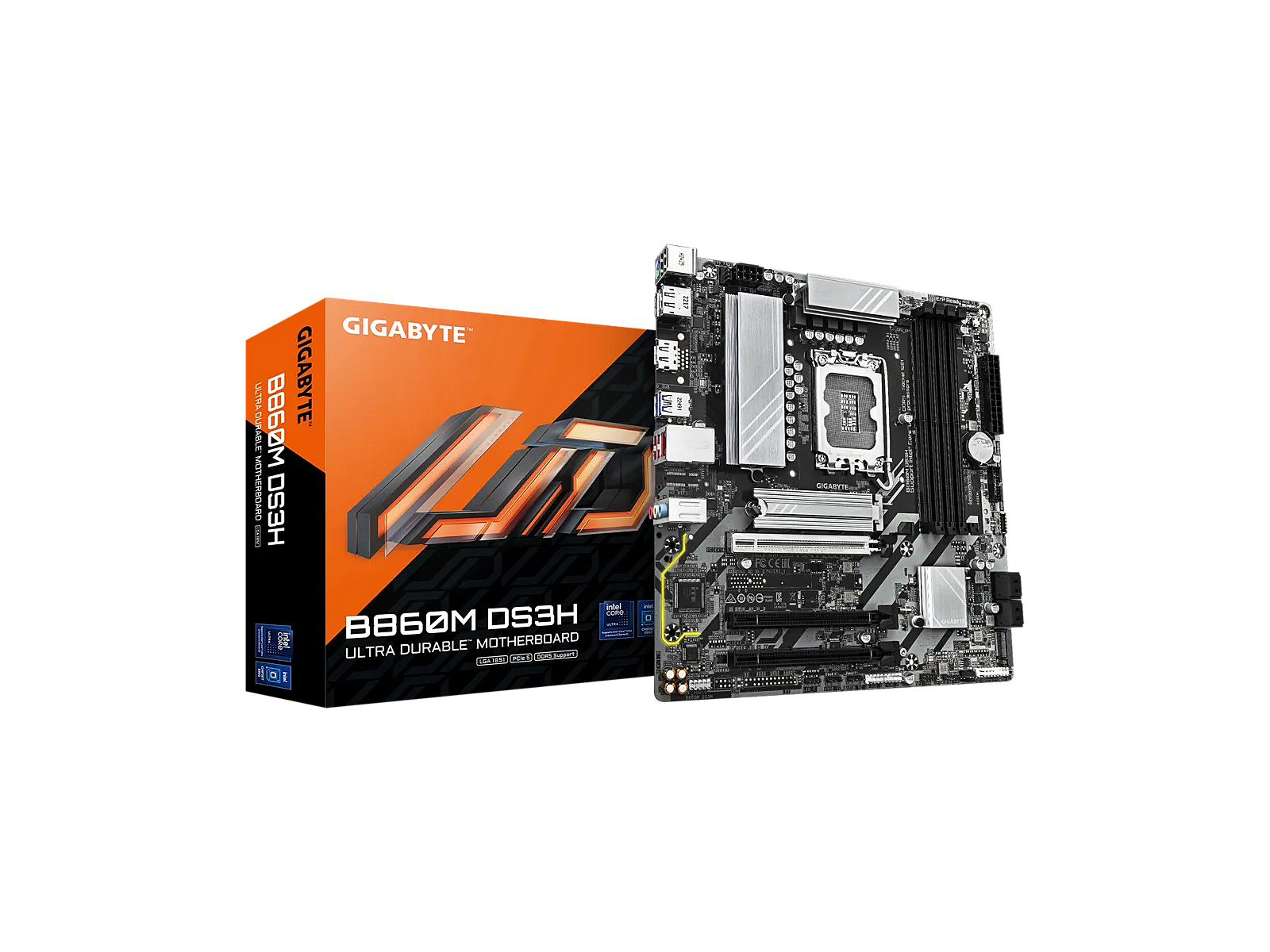 ProductName - B860M DS3H Motherboard - Intel Core Ultra Series CPUs, 5+1+2+1 Phases VRM, up to 9066MHz DDR5, 1xPCIe 5.0 + 1xPCIe 4.0 M.2, 2.5GbE LAN, USB 3.2 Gen 2