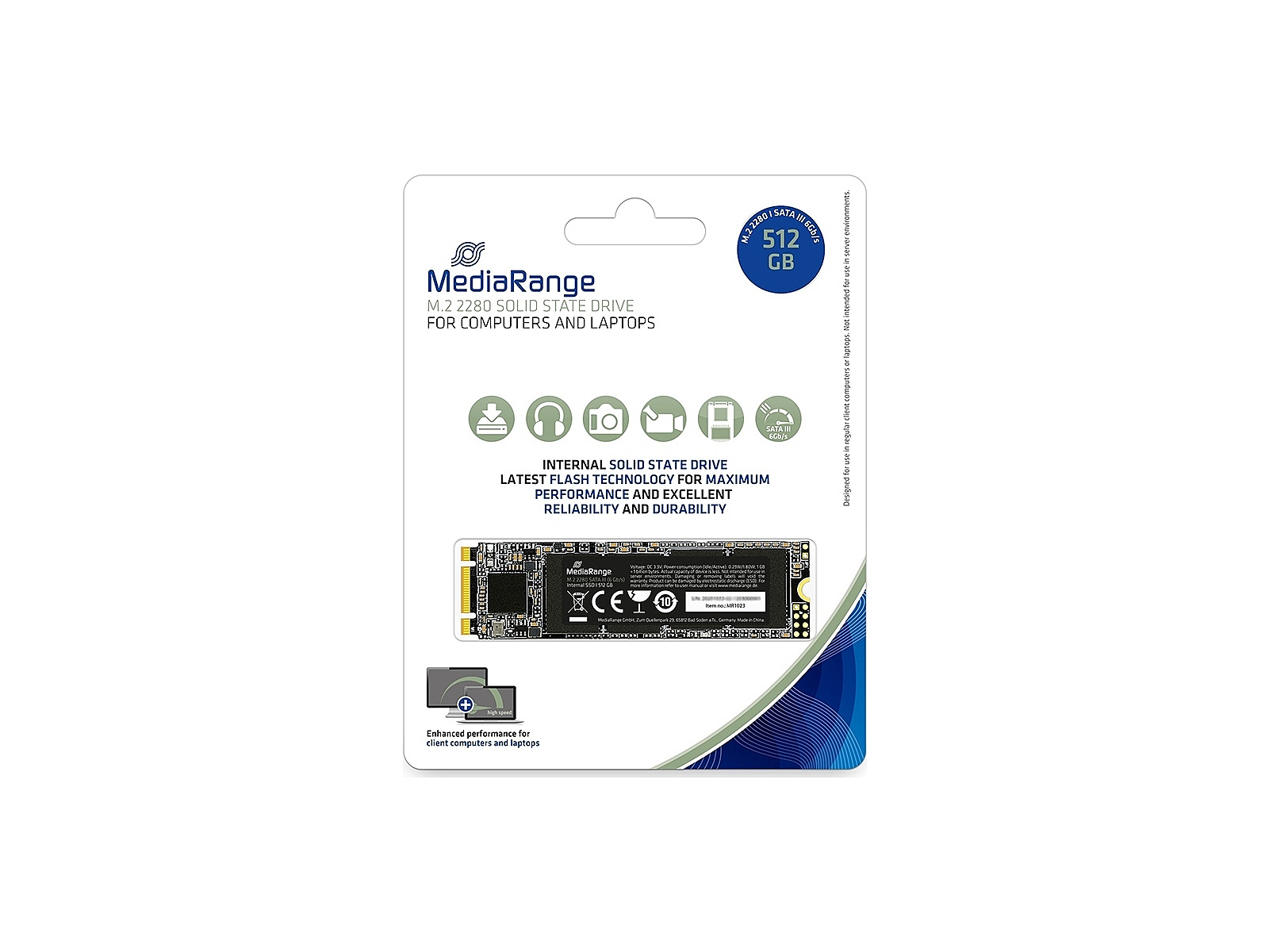 This MediaRange brand SSD has a 512 GB capacity and a M.2 80mm (2280) format.