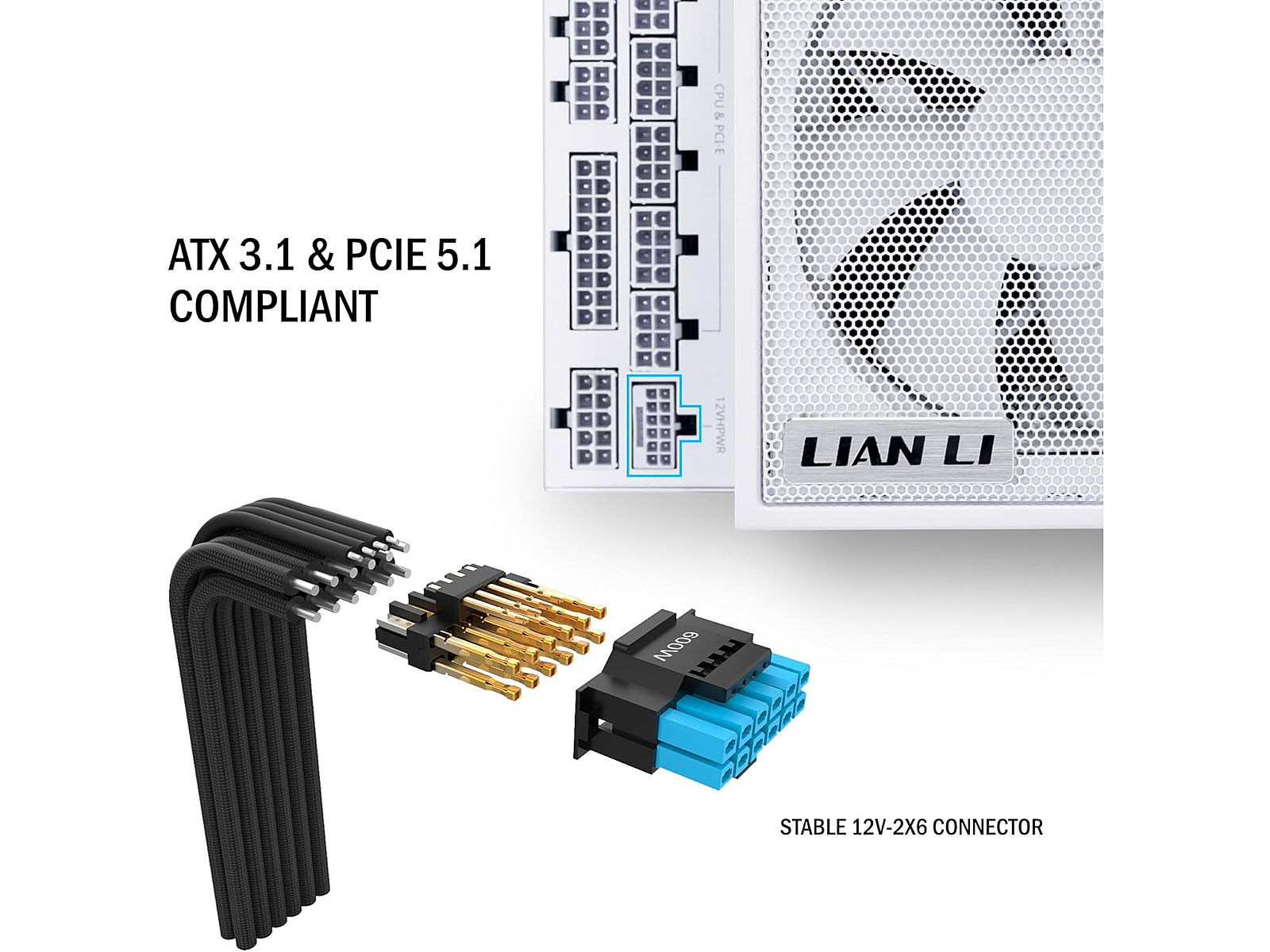 Lian Li EDGE 1000W, 80PLUS Platinum, PCIe 5.1, ATX 3.1, White Sleeved Cables