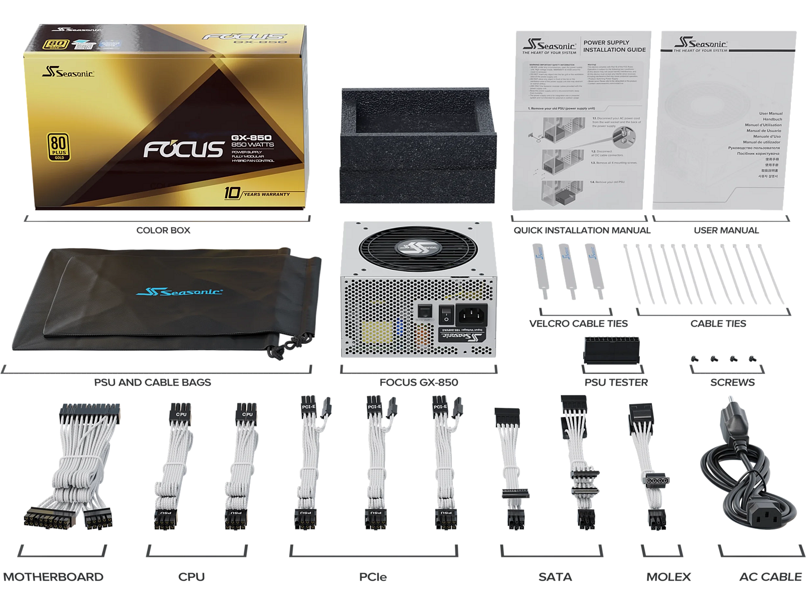 name - Seasonic Focus GX 80 PLUS Gold Netzteil, modular, PCIe 5.1 - 850 Watt, weiß