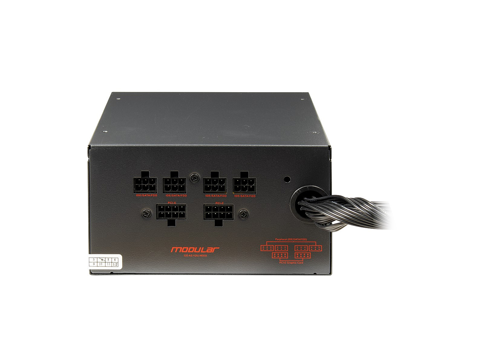 This power supply unit does not have modular cables – all its cables are attached to the unit and are not detachable. Despite the simple design, it will fulfill its functions just as well as a power supply unit with modular cables.