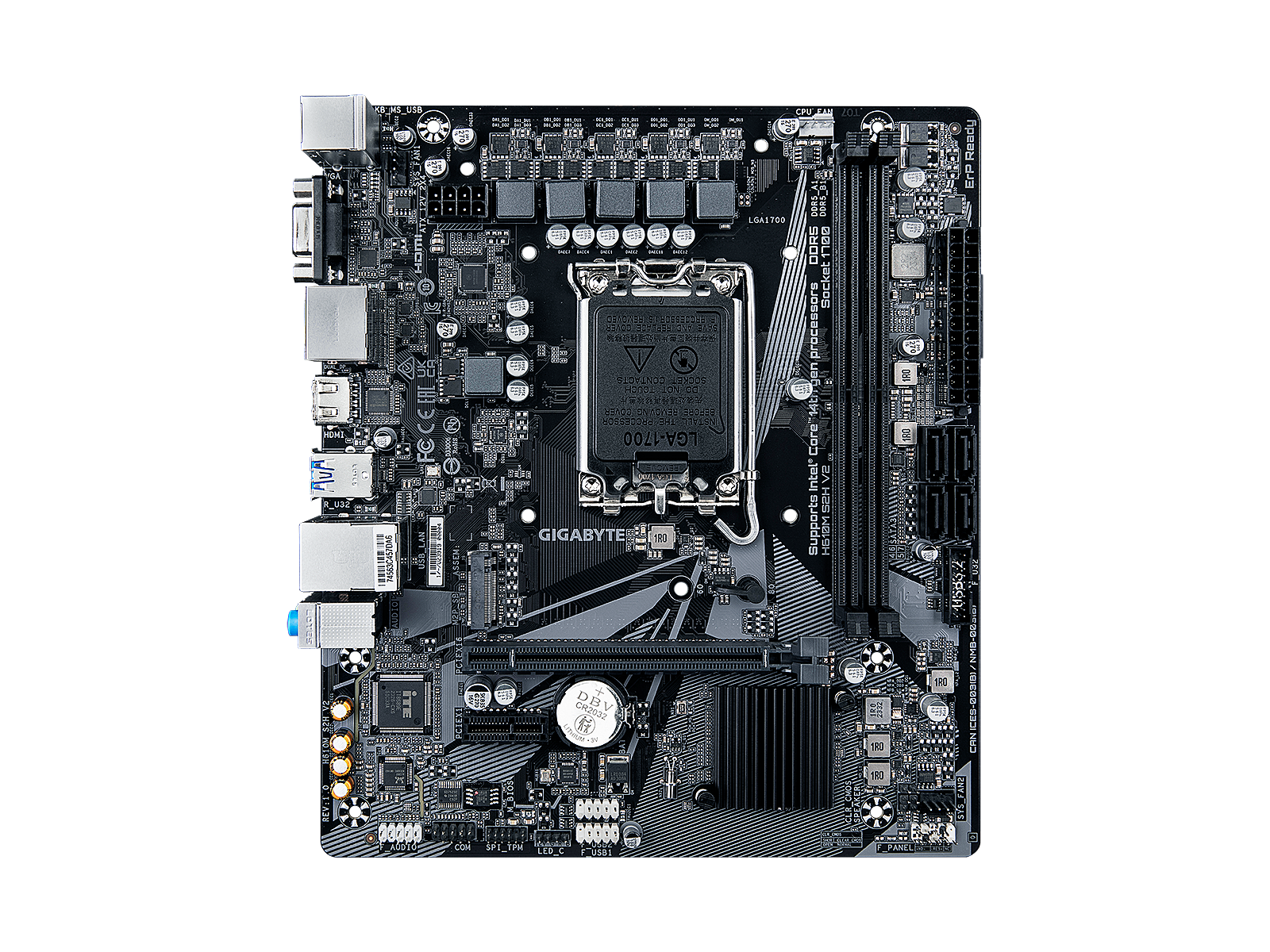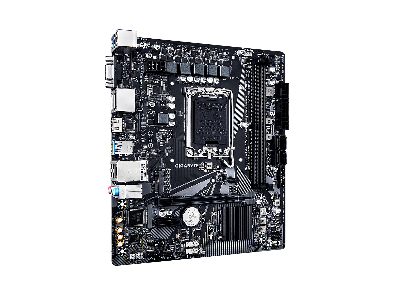 ShortSummaryDescription - GIGABYTE H610M S2H V2 Motherboard - Supports Intel Core 14th CPUs, 4+1+1 Hybrid Phases Digital VRM, up to 5600MHz DDR5, 1xPCIe 3.0 M.2, GbE LAN, USB 3.2 Gen 1, Intel, LGA 1700, Intel® Celeron®, Intel® Core™ i3, Intel® Core™ i5, Intel® Core™ i7, Intel® Core™ i9,..., LGA 1700, 96 GB, DDR5-SDRAM