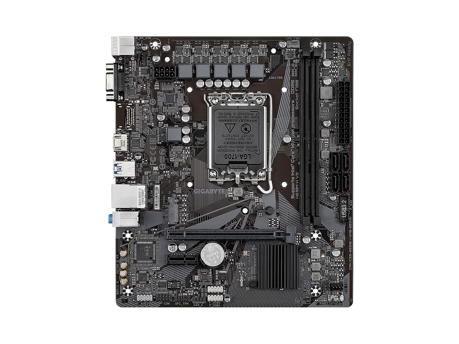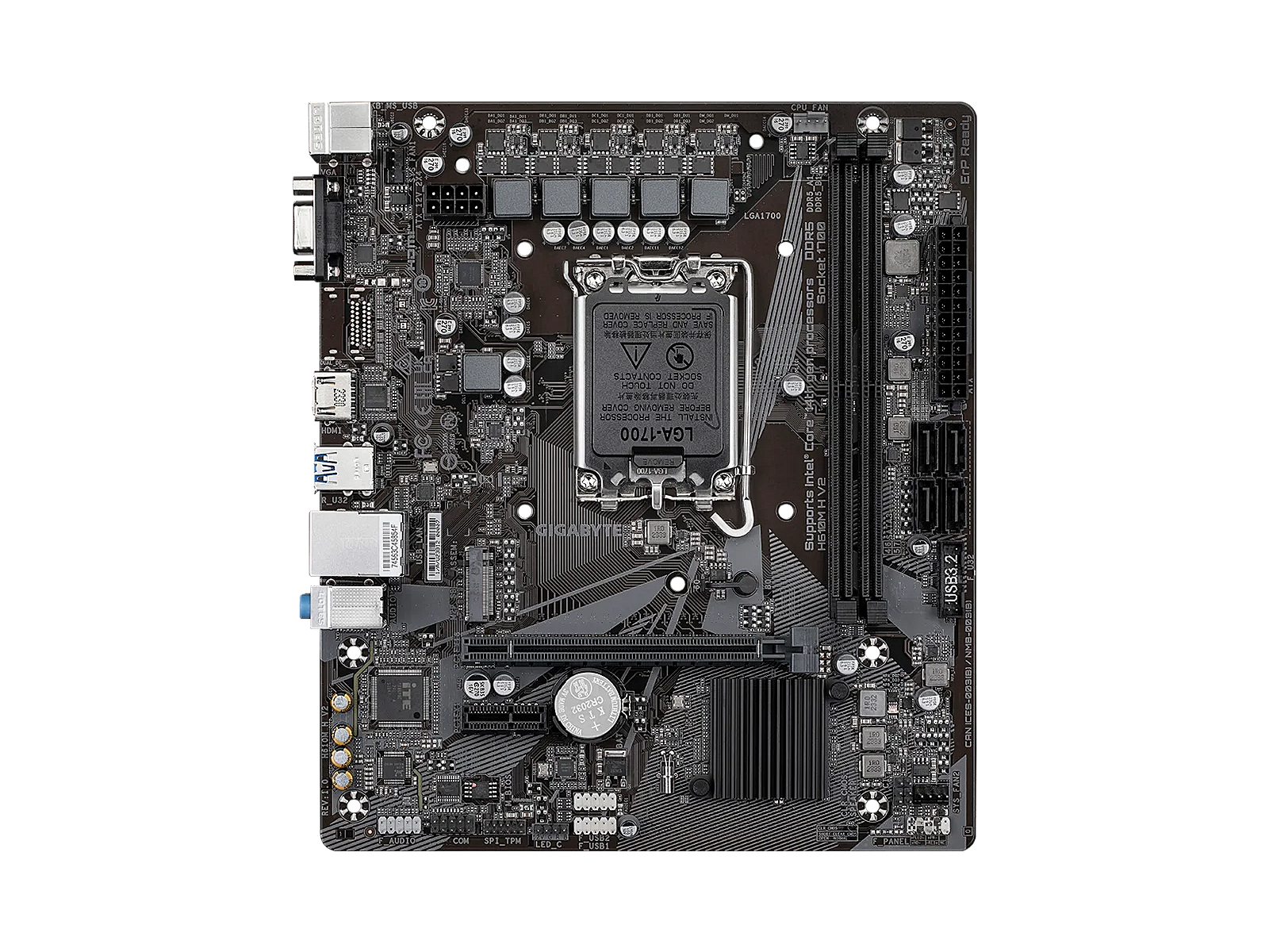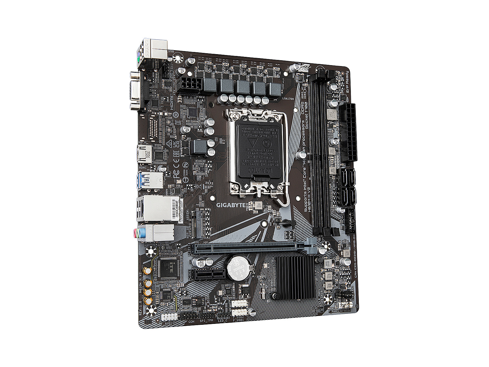 ShortSummaryDescription - GIGABYTE H610M H V2 Motherboard - Supports Intel Core 14th CPUs, 4+1+1 Hybrid Digital VRM, up to 5600MHz DDR5, 1xPCIe 3.0 M.2, GbE LAN, USB 3.2 Gen 1, Intel, LGA 1700, Intel® Celeron®, Intel® Core™ i3, Intel® Core™ i5, Intel® Core™ i7, Intel® Core™ i9,..., LGA 1700, 96 GB, DDR5-SDRAM