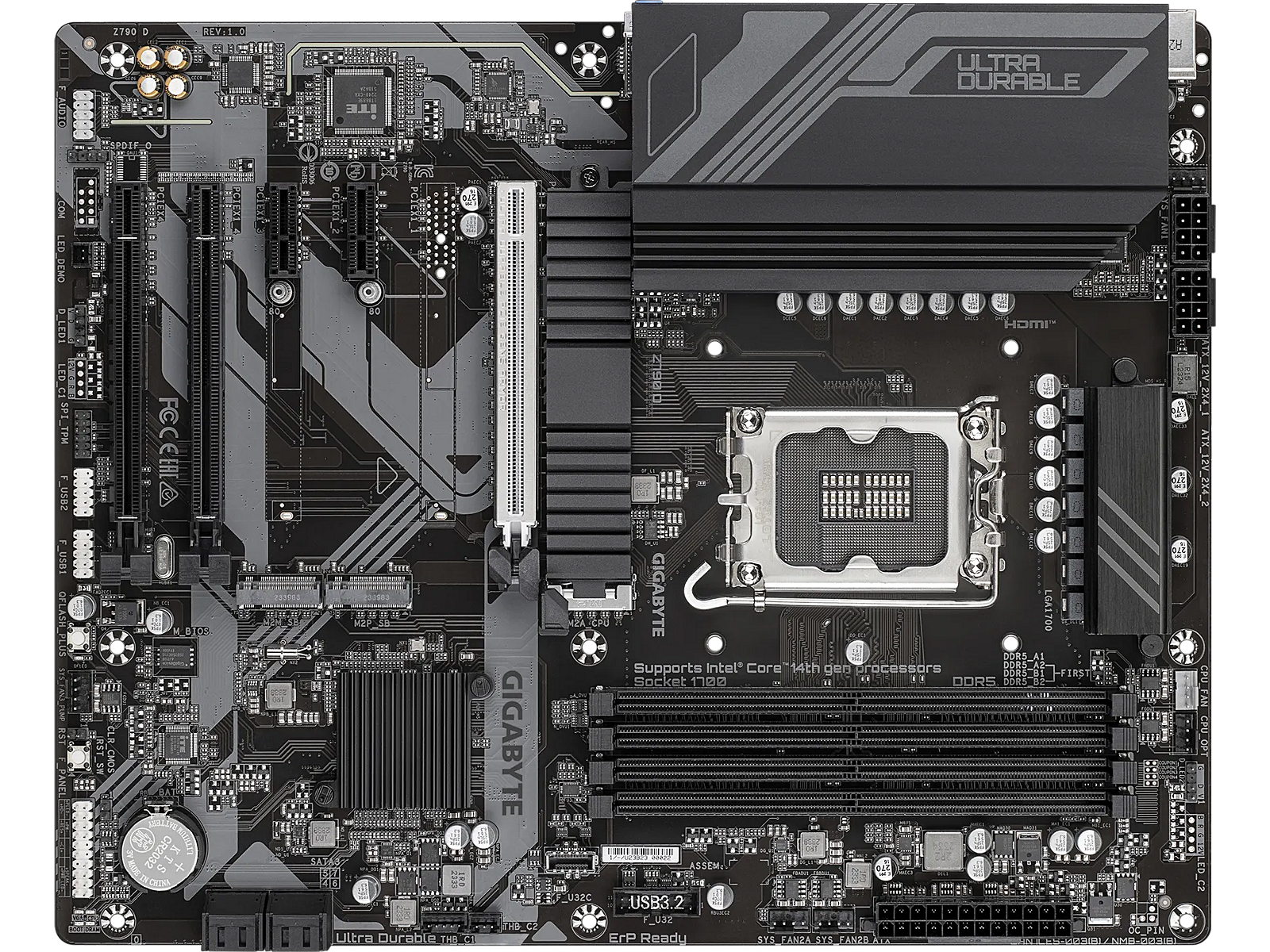 ShortSummaryDescription - GIGABYTE Z790 D Motherboard - Supports Intel Core 14th Gen CPUs, 12+1+1 Phases Digital VRM, up to 7600MHz DDR5 (OC), 3xPCIe 4.0 M.2, 2.5GbE LAN, USB 3.2 Gen 2, Intel, LGA 1700, Intel® Celeron®, Intel® Core™ i3, Intel® Core™ i5, Intel® Core™ i7, Intel® Core™ i9,..., LGA 1700, 192 GB, DDR5-SDRAM
