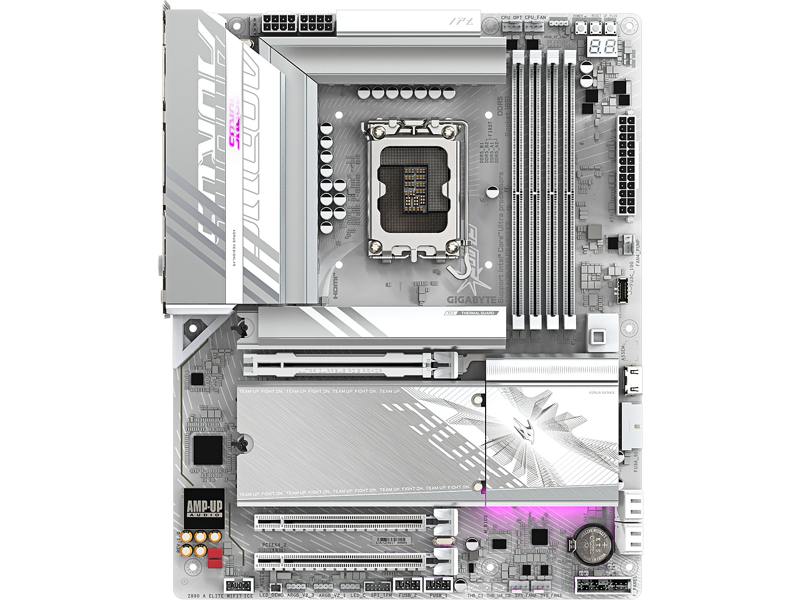 Description - Z890 AORUS ELITE WIFI7 ICE Supports Intel® Core™ Ultra processors (Series 2) Digital twin 16+1+2 phases VRM solution D5 Bionic Corsa for Infinite Memory Performance AI Perfdrive : Provides optimal and customized BIOS preset profile for users Premium Compatibility : 4*DDR5 with XMP Memory Module Support WIFI EZ-Plug : Quick and easy design for Wi-Fi antenna installation EZ-Latch Plus : PCIe and M.2 slots with Quick Release & Screwless Design EZ-Latch Click : M.2 heatsinks with screwless design Sensor Panel Link : Onboard video port for hassle-free in-chassis panel setup Friendly UI : Multi-Theme, AIO Fan Control, and Q-Flash Auto Scan in BIOS and SW New Power Monitor in HWinfo for real-time monitoring on CPU power phases Ultra-Fast Storage : 4*M.2 slots, including 1* PCIe 5.0 x4 Efficient Thermal : VRM Thermal Armor Advanced & M.2 Thermal Guard L Fast Networking : 2.5GbE LAN & Wi-Fi 7 with directional Ultra-high gain antenna Extended Connectivity : THUNDERBOLT™ 4 Type-C with DP-Alt, DisplayPort High-Res Audio : ALC1220 & WIMA Audiophile Grade Capacitors Ultra Durable PCIe Armor : The metal back plate of PCIe x16 slot for enhanced durability PCIe UD Slot X : PCIe 5.0 x16 slot with 10X strength for graphics card