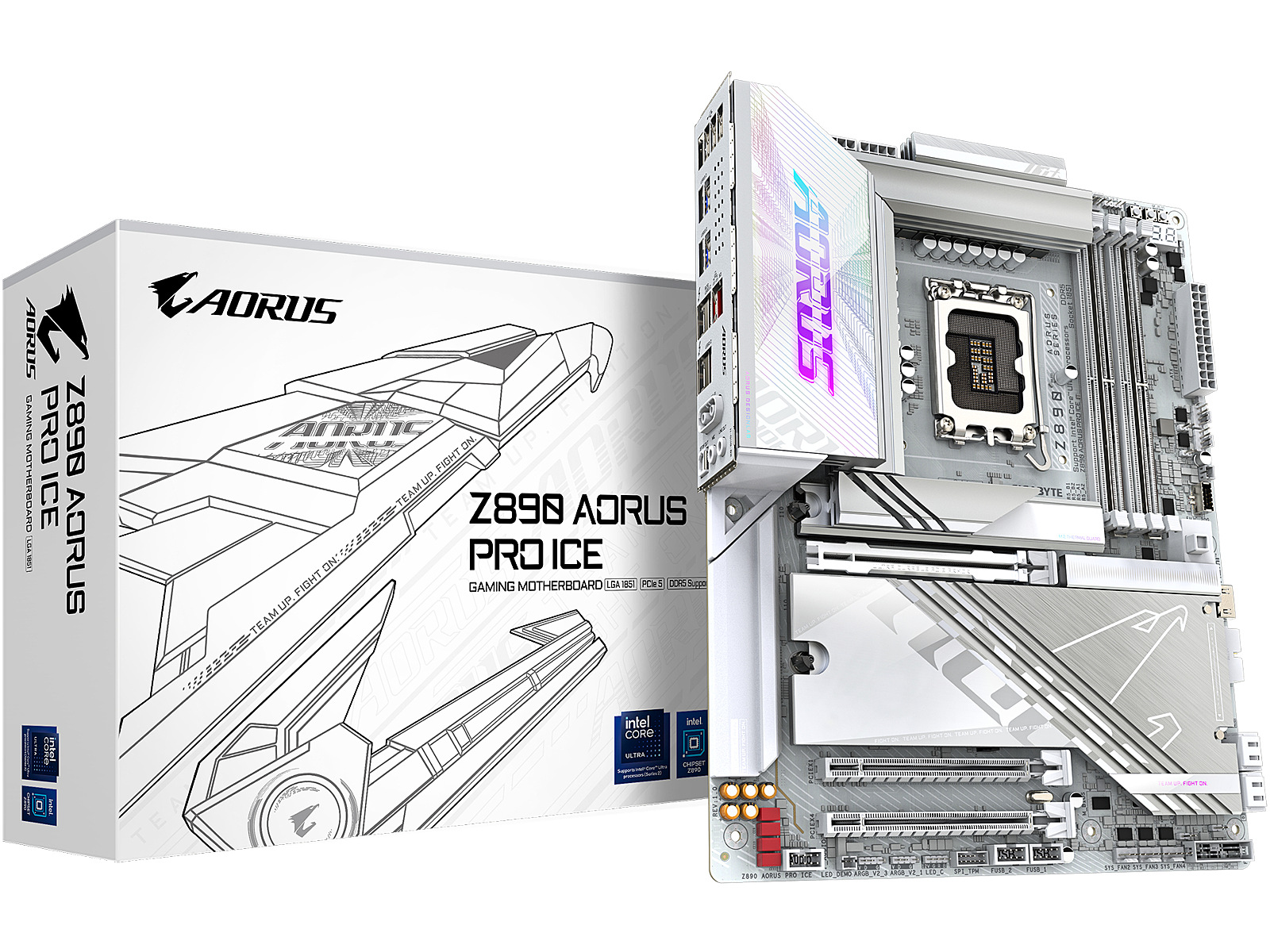 ProductName - Z890 AORUS PRO ICE Motherboard - Supports Intel Core Ultra (Series 2) CPUs, 16+1+2 phases VRM, up to 9500MHz DDR5 (OC), 1xPCIe 5.0 + 4xPCIe 4.0, Wi-Fi 7, 5GbE LAN, Thunderbolt 4