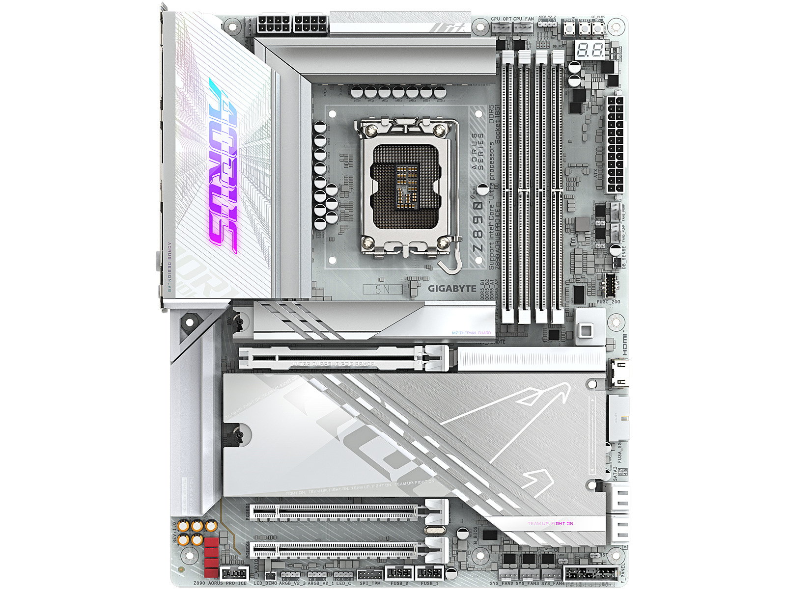 Description - Z890 AORUS PRO ICE Supports Intel® Core™ Ultra processors (Series 2) Digital twin 16+1+2 phases VRM solution D5 Bionic Corsa for Infinite Memory Performance AORUS AI SNATCH : Auto-Overclocking Software by AI models AI Perfdrive : Provides optimal and customized BIOS preset profile for users Premium Compatibility : 4*DDR5 with XMP Memory Module Support DDR Wind Blade : Enhanced Active Cooling for Memory Modules WIFI EZ-Plug : Quick and easy design for Wi-Fi antenna installation EZ-Latch Plus : PCIe and M.2 slots with Quick Release & Screwless Design EZ-Latch Click : M.2 heatsinks with screwless design Sensor Panel Link : Onboard video port for hassle-free in-chassis panel setup Friendly UI : Multi-Theme, AIO Fan Control, and Q-Flash Auto Scan in BIOS and SW New Power Monitorin HWinfo for real-time monitoring on CPU power phases Ultra-Fast Storage : 5*M.2 slots, including 1* PCIe 5.0 x4 Efficient Thermal : VRM Thermal Armor Advanced & M.2 Thermal Guard L Fast Networking : 5GbE LAN & Wi-Fi 7 with directional Ultra-high gain antenna Extended Connectivity : Dual THUNDERBOLT™ 4 Type-C with DP-Alt High-Res Audio : ALC1220 & WIMA Audiophile Grade Capacitors Ultra Durable PCIe Armor : The metal back plate of PCIe x16 slot for enhanced durability PCIe UD Slot X : PCIe 5.0 x16 slot with 10X strength for graphics card
