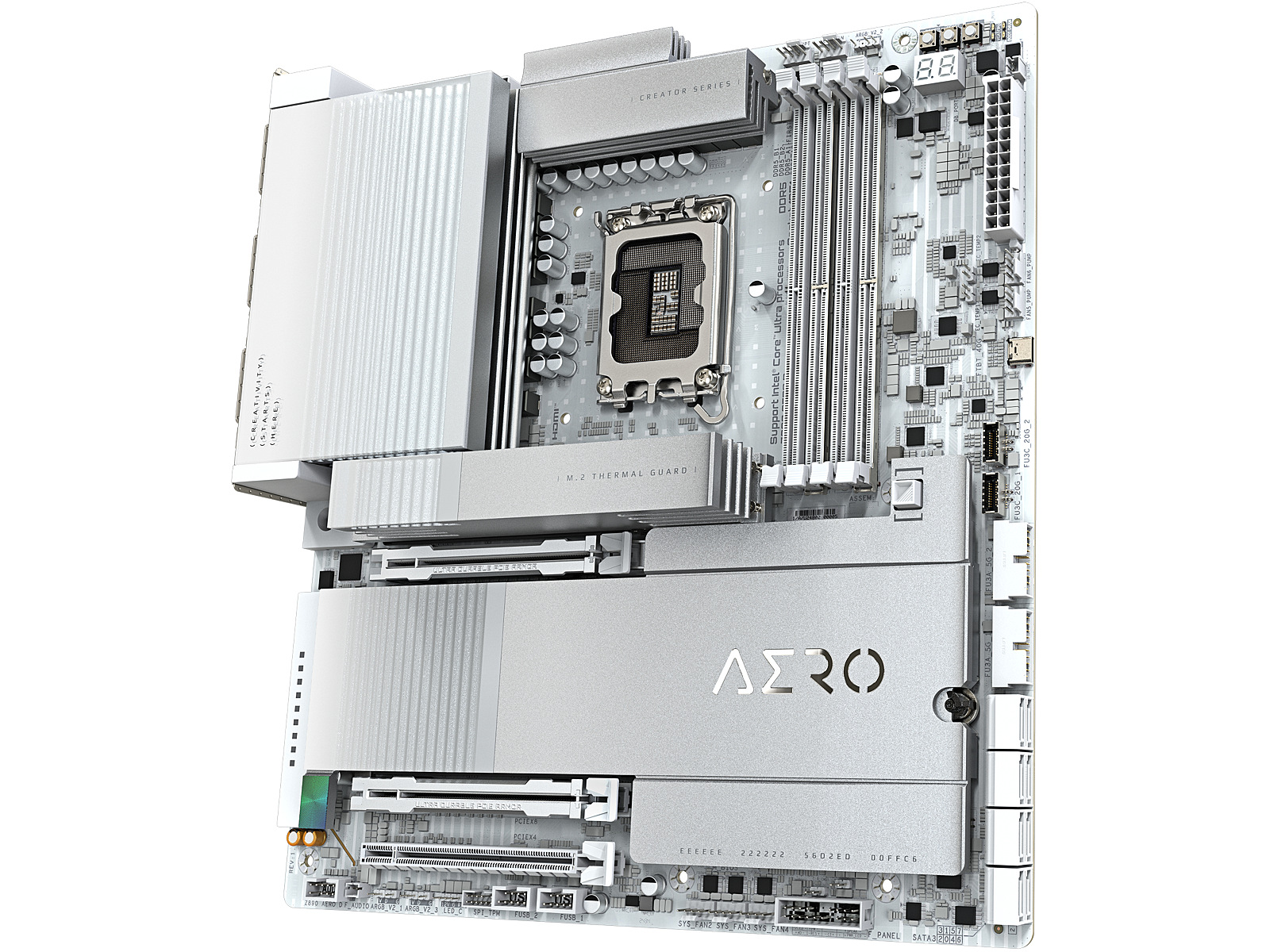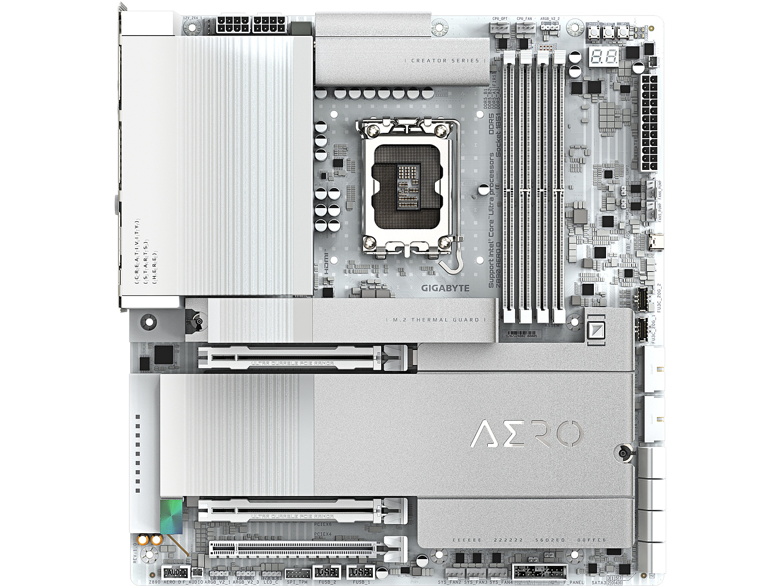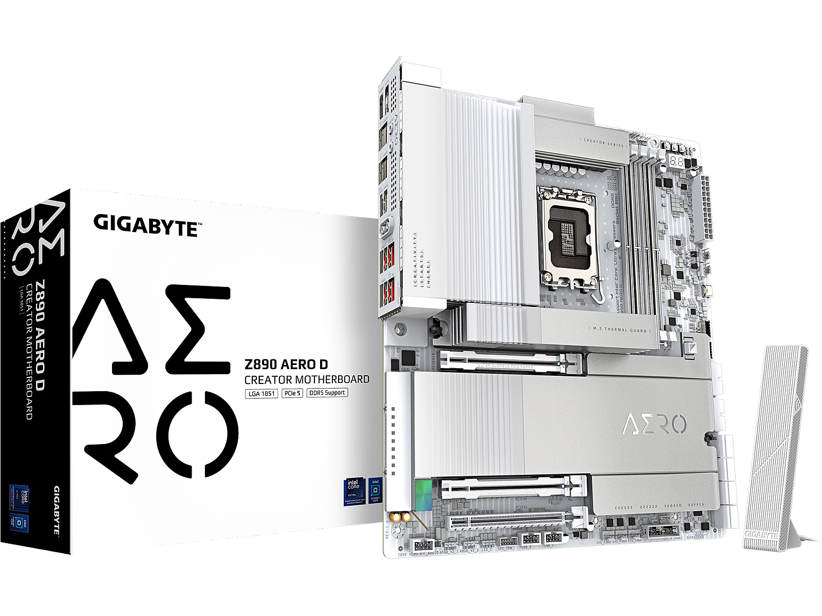 ShortSummaryDescription - GIGABYTE Z890 AERO D Motherboard - Supports Intel Core Ultra (Series 2) CPUs, 16+1+2 phases VRM, up to 9500MHz DDR5 (OC), PCIe 5.0 M.2, Wi-Fi 7, Thunderbolt 5, Intel, LGA 1851 (Socket V1), Intel Core Ultra (Series 2), LGA 1851, DDR5-SDRAM, 256 GB