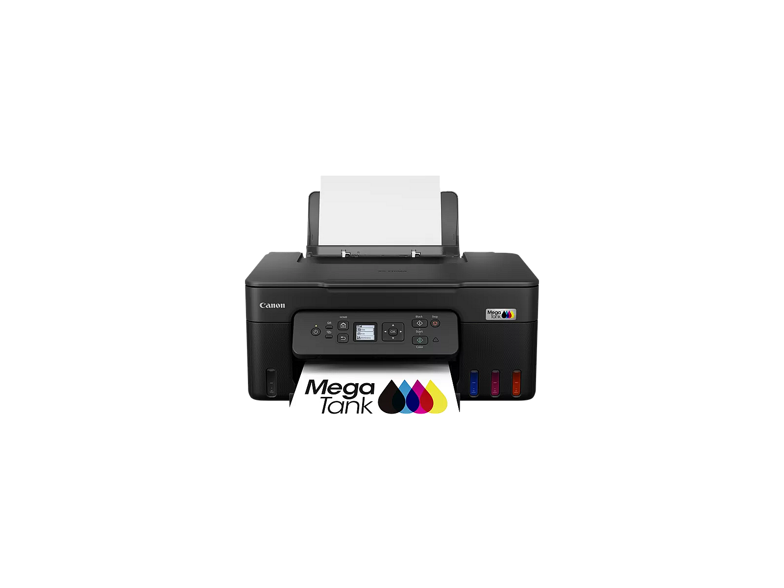 High-capacity, refillable ink tanks provide big savings over the life of the printer. You can print 6,000 pages from a black ink bottle (7,600 in economy mode) and 7,700 pages from a set of colour ink bottles (8,100 in economy mode).