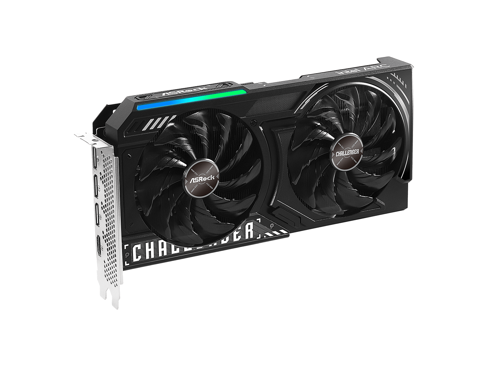 Summary - Asrock Challenger Intel Arc B570 10GB OC. Graphics processor family: Intel, Graphics processor: Arc B570, Processor frequency: 2600 MHz. Discrete graphics card memory: 10 GB, Graphics card memory type: GDDR6, Memory bus: 160 bit. Maximum resolution: 7680 x 4320 pixels. DirectX version: 12 Ultimate, OpenGL version: 4.6. Interface type: PCI Express x8 4.0. Cooling type: Active, Number of fans: 2 fan(s), Illumination colour: Multi