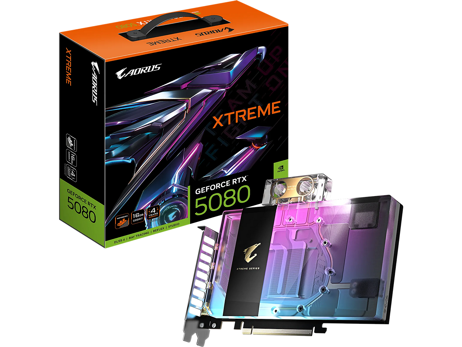 ShortSummaryDescription - GIGABYTE AORUS GeForce RTX 5080 XTREME WATERFORCE WB 16G Graphics Card - 16GB GDDR7, 256bit, PCI-E 5.0, 2805MHz Core Clock, 3 x DP 2.1a, 1 x HDMI 2.1b, NVIDIA DLSS 4, GV-N5080AORUSX WB-16GD, GeForce RTX 5080, 16 GB, GDDR7, 256 bit, 7680 x 4320 pixels, PCI Express x16 5.0
