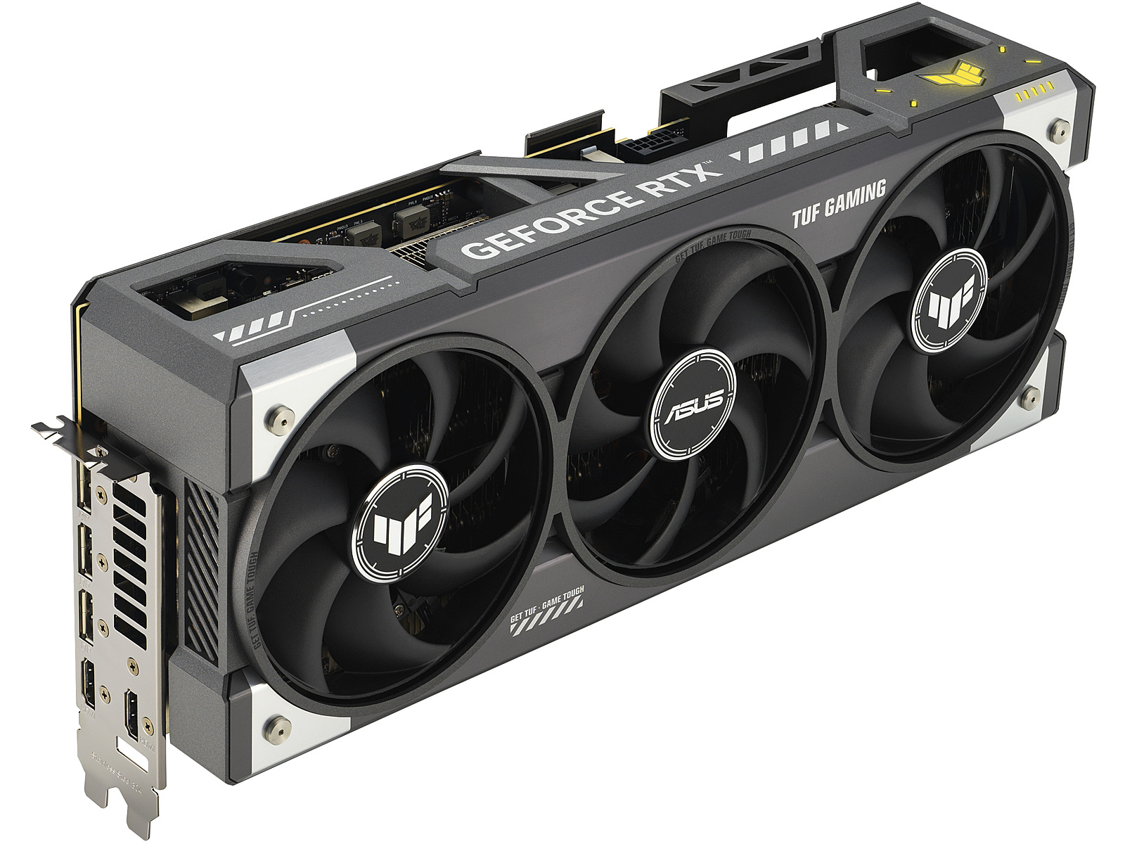 LongDesc - Game TUF. Built to Last.ASUS TUF Gaming GeForce RTX™ 5090NVIDIA Blackwell architecture is elevated by enhanced cooling and power delivery, fortified with rugged reinforcements for exceptional durability. Lock, load, and dominate with the TUF Gaming GeForce RTX™ 5090, designed to withstand the harshest conditions and deliver unparalleled performance.Military-Grade ComponentsTUF Chokes & MOSFETsCertified military-grade TUF chokes and MOSFETs deliver rock-solid power to the GPU, which can help improve system stability.TUF CapacitorsTUF 5K black metallic capacitors provide 52% wider temperature tolerance and a 2.5X longer lifespan than standard capacitors.Phase-Change GPU Thermal PadBy melting to effectively fill the gaps between the GPU and the thermal module, a premium phase-change GPU thermal pad provides superior thermal conductivity and enhanced heat dissipation, ensuring optimal performance and longevity for graphics cards under heavy loads.Protective PCB CoatingA protective conformal coating envelops the circuit board to help protect against short-circuits caused by moisture, dust or debris.Dual-ball Fan BearingsDual-ball bearings offer an extensive lifespan of up to 80,000 hours, double the longevity of sleeve bearings and surpassing fluid dynamic bearings. This helps ensure long-lasting, reliable and quiet cooling.
