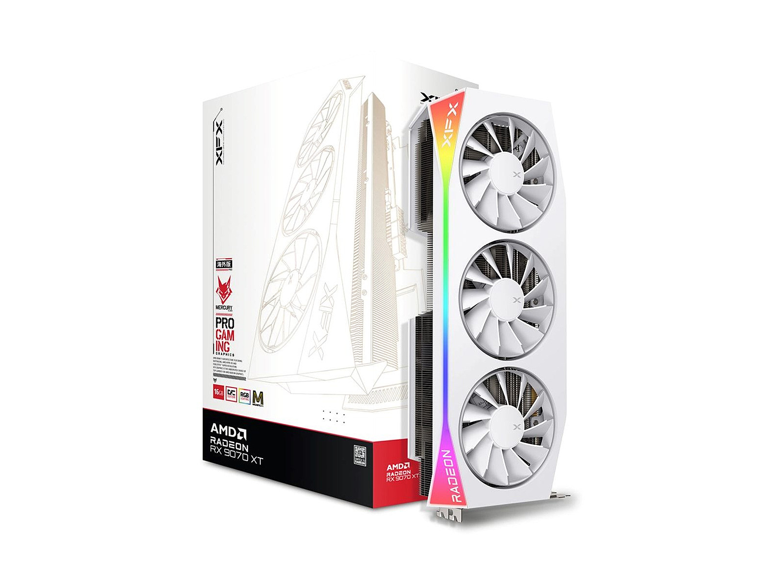 ProductDescription - XFX Mercury AMD Radeon RX 9070XT OC White Magnetic Air Edition with RGB 16GB GDDR6 HDMI 3xDP, AMD RDNA 4