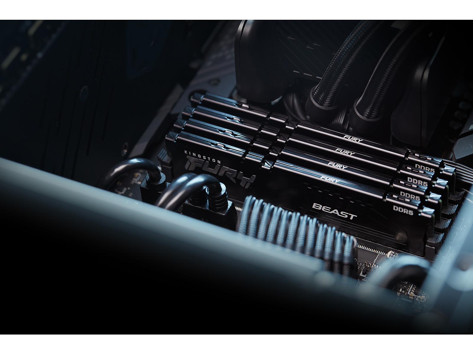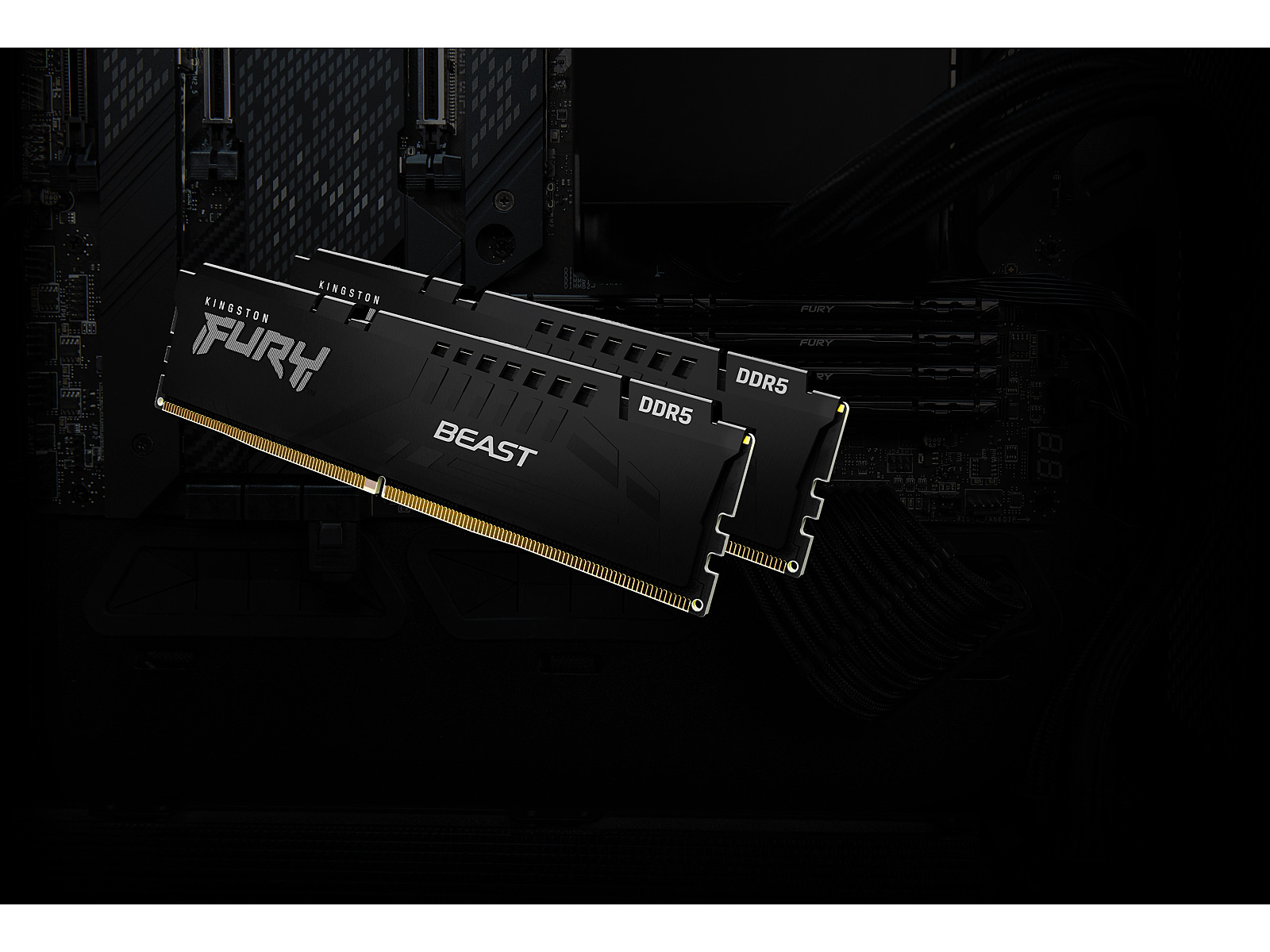 LongDesc - Up to 6800MT/sKingston FURY™ Beast DDR5 memory provides superb speed, capacity and reliability for next-gen gaming platforms. Level up your machine’s performance with enhanced features like on-die ECC for better stability and dual 32-bit subchannels to boost efficiency. Kingston FURY Beast DDR5 offers overclock specs for Intel® XMP 3.0 and AMD EXPO™ with customisable profiles for speeds and timings to help you wring the most from your gaming experience, livestream at 4K+ or push animation and 3D rendering projects.Kingston FURY™ Beast DDR5 memory brings the latest, cutting-edge technology for next-gen gaming platforms. Taking speed, capacity and reliability even further, DDR5 arrives with an arsenal of enhanced features, like on-die ECC (ODECC) for improved stability at extreme speeds, dual 32-bit subchannels for increased efficiency and an on-module power management integrated circuit (PMIC) to provide juice where it’s needed most. Superior speed advancements, with double the banks from 16 to 32 and double the burst length from 8 to 16, take DDR5 memory, your gaming experience and your overall system applications to the next level of performance.Whether you’re pushing the limits in your gaming with the most extreme settings, live streaming at 4K+ or pushing large animation and 3D rendering, Kingston FURY Beast DDR5 memory is the level-up needed, while seamlessly bridging style and unleashing performance.With options featuring Intel XMP 3.0 or AMD EXPO, two new DDR5 overclock specs that include customisable profiles for speeds and timings, Kingston FURY Beast DDR5 has your compatible overclock solutions covered."Improved stability for overclockingOn-die ECC (ODECC) helps maintain data integrity to sustain the ultimate performance while you push the limits!Increased efficiencyBoosted by double the banks and burst length and two independent 32-bit subchannels, DDR5’s exceptional handling of data shines with the latest games, programs and demanding applications.Intel® XMP 3.0 certifiedAdvanced pre-optimised timings, speed and voltage for overclocking performance and save new user-customisable profiles using a programmable PMIC.AMD EXPO certifiedAMD EXPO (Extended Profiles for Overclocking) Certified modules include Intel XMP 3.0 profiles, enabling compatibility with the platform of your choice.Qualified by the world’s leading motherboard manufacturers*Tested and approved so you can build and upgrade with confidence on your preferred motherboard.Low-profile heat spreaderNewly designed heat spreaders in black or white combine bold styling and outstanding cooling functionality.