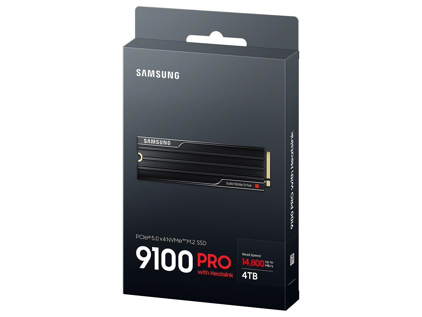 LongSummaryDescription - Samsung 9100 PRO Heatsink PCIe® 5.0 NVMe™ M.2 SSD - 4 TB. SSD capacity: 4 TB, SSD form factor: M.2, Read speed: 14800 MB/s, Write speed: 13400 MB/s, Component for: PC/Game console