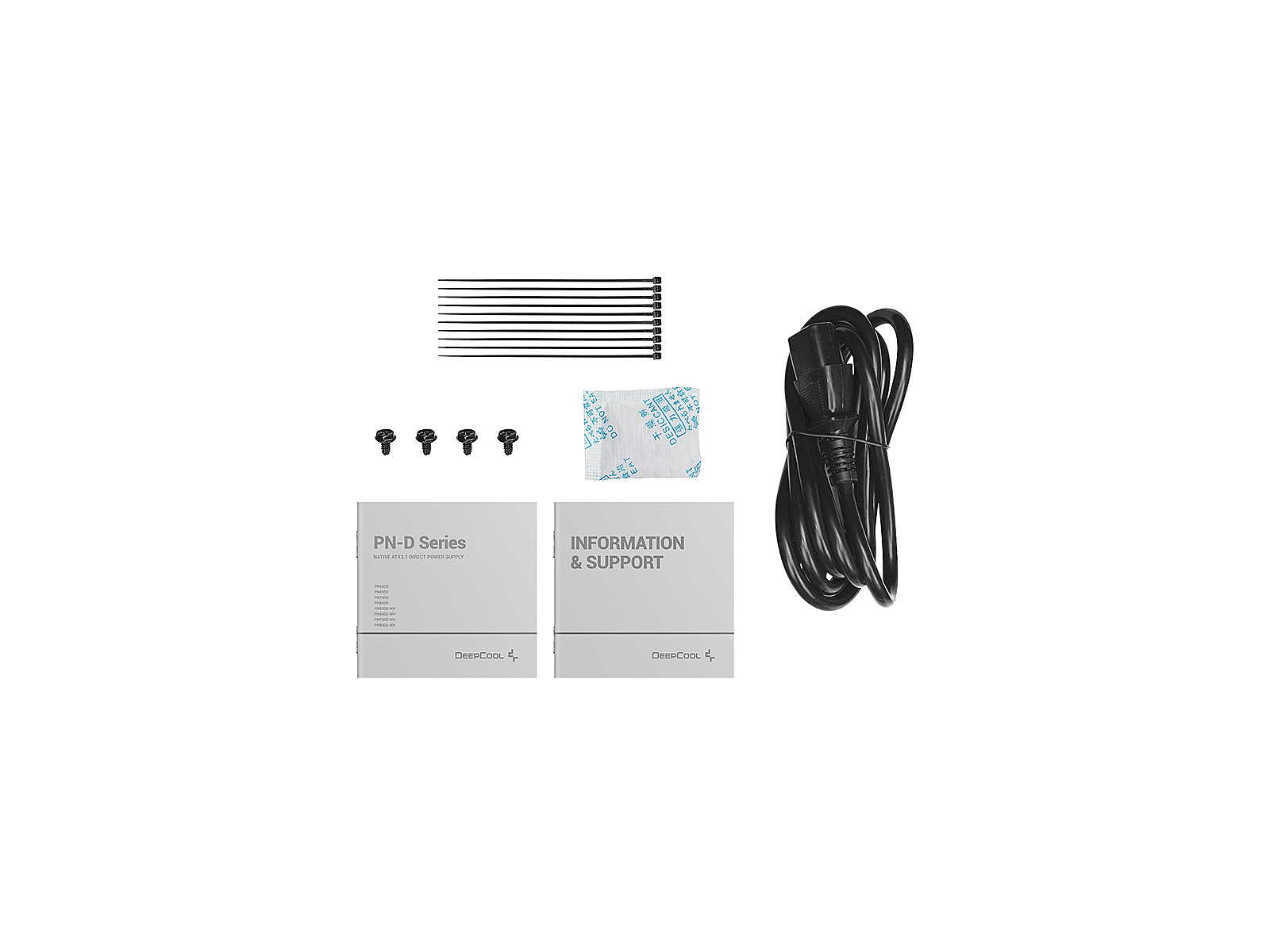LongDesc - PN850DThe DeepCool PN850D is a new non-modular power supply that meets the latest Intel ATX 3.1 and PCIe 5.1 standards. With a dedicated 12V-2x6, 2 EPS, and 3 PCIe connectors, the PN850D provides stable power for a wide range of modern high-power components.PN850DNATIVE DIRECT ATX3.1FUTURE PROOFWith the ability to provide three times the TGP for 0.1 ms, random power spikes will never be an issue. The PN850D will provide stable and consistent power for legacy and next-generation PCs for the foreseeable future.GRACEFUL GOLD80 Plus Gold certified to meet a high level of power efficiency under 90% of typical loads. Each unit is also rated Gold by Cybenetics.POWER YOU CAN TRUSTThrough the use of a premium main electrolytic capacitor, active PFC, full-bridge SRC LLC, and a DC-to-DC topology, the PN850D can keep the hold-up time to ≥ 16 ms under a high load of 80%.PCI-E 5.1 POWEREquipped with a high-grade 105C-resistant 16AWG copper-core sleeved 12V-2x6 cable, the PN850D provides up to 600W for modern GPUs.SLEEVED CABLESThe PN850D has been outfitted with sleeved cables right out of the box! A welcomed upgrade to add to the premium asesthic and feel of the PSU.DYNAMIC HYDRO BEARING FANThe PN850D comes equipped with a dynamic 120mm hydro bearing fan that will adjust its speed based on the cooling needs of the PSU.HIGH QUALITY BUILDDue to the high quality of the parts utilized, the PN850D will operate at altitudes up to 5000 meters above sea level.PEACE OF MINDThe PN850D comes standard with a slew of well-rounded safeguards, including OPP, OVP, SCP, OTP, OCP, UVP, NLO, and SIP.EXCELLENT COVERAGEThe PN850D is engineered and manufactured at such a high level that DeepCool is offering a lengthy 10 years of trouble-free limited warranty coverage.