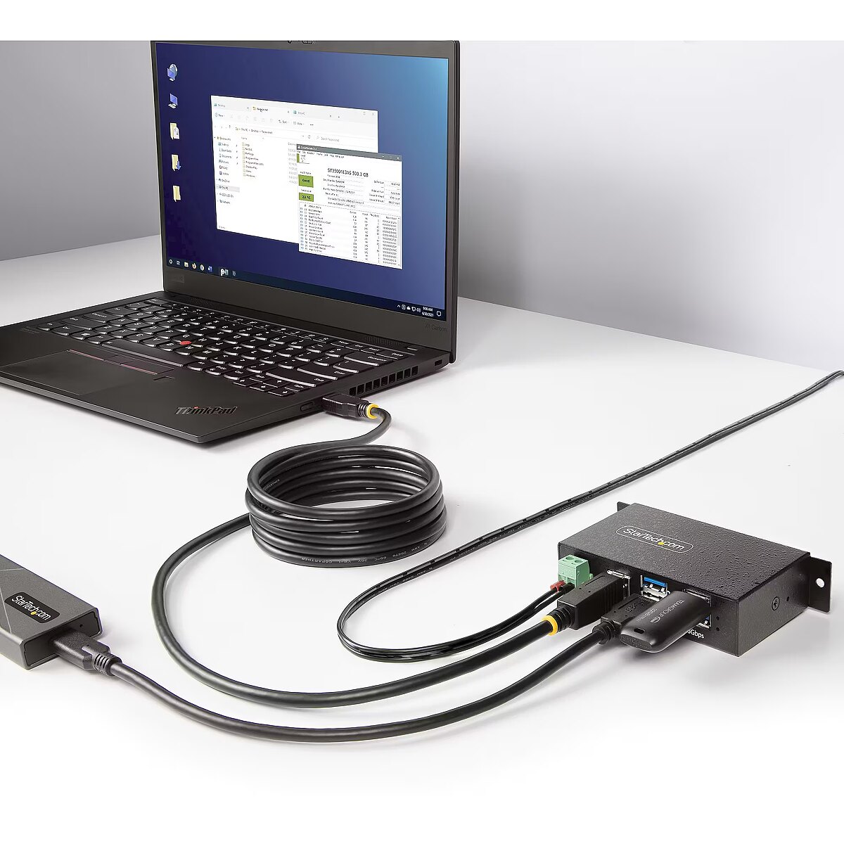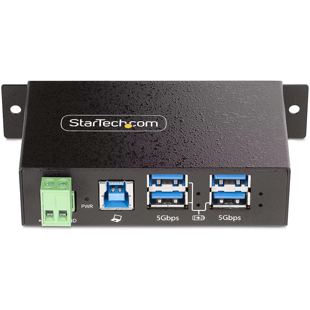 LongDesc - Connect and manage up to four USB Type-A devices, using this USB hub - designed for industrial/commercial environmentsThis 4-port Managed Industrial USB 3.2 Gen 1 (5Gbps) Hub enables users to toggle individual USB ports on/off and to reboot the hub, using the USB Hub Administrator Software (free to download). With robust housing and versatile power input options, the USB Hub is designed to cater to the needs of IT Professionals working in industrial settings such as factories, warehouses, offices, and other similar environments.Managed USB HubThe USB Hub Administrator Software is to be installed on the host computer, enabling users to remotely control device access and manage operational features. With this software, users can:• Enable or disable individual or all ports on the USB Hub.• Reboot the USB Hub.• Set a password to restrict unauthorized access.• Save port states for quick setup in specific applications.• Utilize Command Line Interface (CLI) commands for command-line operation or custom application development.The software is compatible with Windows, macOS, and Linux, making it versatile across various platforms. It supports an unlimited number of Managed USB Hubs, allowing users to connect multiple Hubs to a single host computer or cascade them in sequence.Rugged and ReliableThe Industrial USB Hub features a rugged heavy-duty metal enclosure designed to shield the hub from potential damage caused by accidental drops or sudden impacts. Moreover, it protects against Electrostatic Discharge (ESD) with 15kV air and 8kV contact Level-4 ESD protection. This robust construction ensures resiliency in demanding industrial environments, providing peace of mind for users in situations where durability and reliability are paramount.Power FlexibilityThe USB Hub offers power flexibility to cater to diverse user needs. It features a terminal block power input that supports a wide voltage range from +7 to 48 volts DC, ensuring compatibility with various power sources. With an external power source connected, the USB Hub supports USB battery charging specification 1.2, delivering up to 1.5A (7.5W) on 3 of the downstream ports, so you can power and quickly charge external devices.For optimal performance an external power source is required. StarTech.com offers an external power adapter (Part Number: ITB20D3250, sold separately) that will enable the USB Hub to operate at maximum performance.Mounting OptionsThe USB Hub is thoughtfully designed for user convenience and adaptability. Equipped with built-in mounting brackets, installation is simplified. The hub may be mounted to a variety of surfaces such as walls or desks. The DIN rail bracket ensures secure mounting in industrial environments.High-PerformanceThe rugged USB Hub supports SuperSpeed USB 3.2 Gen 1 (5Gbps) and maintains backward compatibility with legacy peripheral devices. Additionally, the USB Hub offers enhanced security through the USB Event Monitor utility, a feature within the StarTech.com Connectivity Tools application. This utility logs and timestamps USB port usage, empowering IT administrators to identify potentially malicious devices. For more details and to download the StarTech.com Connectivity Tools application, please visit: www.StarTech.com/Connectivity-ToolsThe StarTech.com Advantage