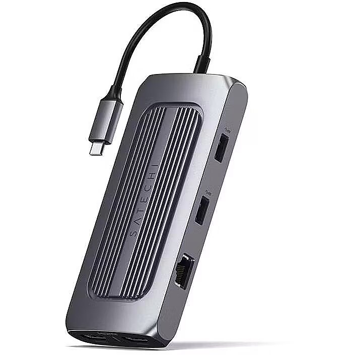 VidējaisApraksts ET - Satech alumīnija USB-C koncentrators jūsu dzīvē pievieno vairāk saskarņu. Multiport MX adapteris ir īpaši izstrādāts Apple M1 ierīcēm, taču lieliski darbojas arī ar citām USB-C ierīcēm. - Divas 4K HDMI izejas - viena līdz 60 Hz, otra līdz 30 Hz - USB-C PD uzlāde - līdz 100 W - Gigabit Ethernet - USB-C datu pārraide - līdz 5 Gbps - 2 x USB-A 3.0 datu pārraide - līdz 5 Gbps - Micro/SD atmiņas karšu lasītājs - 3,5 mm saskarne.