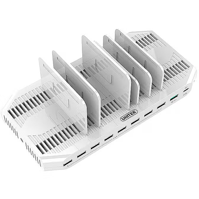 Apraksts - Galvenās iezīmes: - Ātra un droša uzlāde, pateicoties BC1.2 tehnoloģijas atbalstam - Strāvas intensitāte uz izejas 2,4 A - QC 3.0 tehnoloģija - Pārslodzes aizsardzība - Īpaši izstrādāti taustiņi, kas ļauj ielādēt ierīci stacijā - Separators, kas ļauj regulēt platumu (11 gab.) - Ciets un stabils korpuss - Maksimāla līdz 10 ierīču uzlāde vienlaicīgi - LED indikators, kas norāda uzlādes statusu - Ideāli piemērots skolām, restorāniem, birojiem, mājām, kur ir daudz mobilo ierīču vienā vietā.