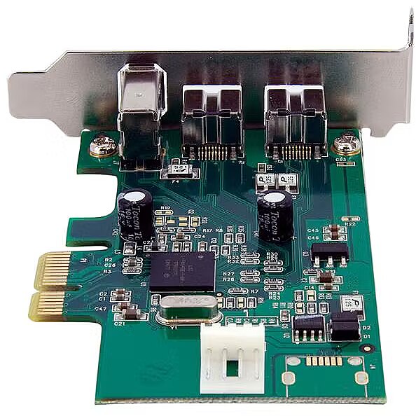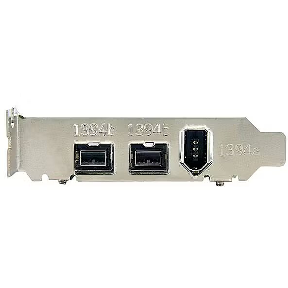 LongDesc - Add 2 native FireWire 800 ports to your low profile/small form factor computer through a PCI Express expansion slotThis 3 Port PCI Express FireWire card comes equipped with a low profile bracket for installation in small form factor PCs, and includes an optional full-size bracket for installation in a standard-sized PC case.The FireWire card can be installed in a PCIe slot to add two IEEE1394b (FireWire 800 - 9 pin) ports and one IEEE1394a (FireWire 400 - 6 pin) port, providing broad compatibility with a wide range of FireWire devices (e.g. DV camcorders, external hard drives, digital cameras, etc.).The 2x FireWire 800 and 1x FireWire 400 card features a native (single chip) PCI Express chipset, which provides faster, more reliable and cost-effective performance than expansion cards that utilize a "bridge" chip.The StarTech.com Advantage