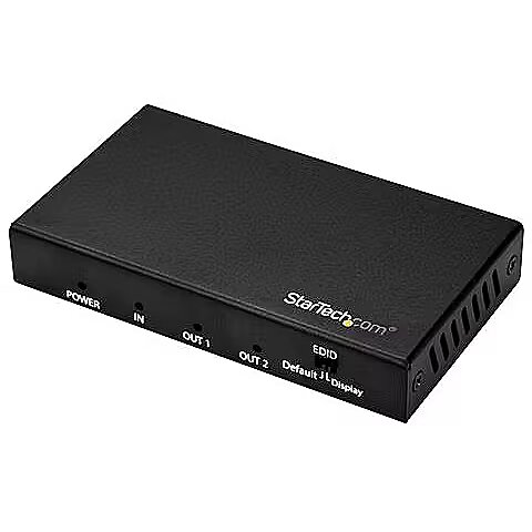 LongDesc - 1 In 2 Out Video Splitter | HDMI 2.0 | HDR | 2-Year WarrantyThis 2-Port 4K HDMI splitter connects your HDMI video source to two HDMI displays at the same time, without distorting or degrading your video signal. For dependable performance, the splitter features a durable metal housing that provides passive cooling.True 4K at 60Hz and HDRWith transmission bandwidth up to 18Gbps, this HDMI splitter is fully compatible with your HDMI 2.0 equipment, supporting UHD resolutions up to 4096x2160 (4K) at 60Hz. For smooth video and color transitions, the splitter offers 4:4:4 chroma subsampling, so every pixel gets its own unique color.The splitter also supports High Dynamic Range (HDR) imaging, offering a greater luminosity than standard digital imaging.Widely CompatibleThe 2-way HDMI splitter supports HDCP 2.2 and is backward compatible with 4K 30Hz and 1080p displays. This ensures that it will work with almost any HDMI source, or destination device such as computers, Blu-ray players, monitors, TVs and projectors. Perfect for digital signage applications, where equipment may vary throughout your site.Easy InstallationFor hassle-free setup, the 1x2 HDMI splitter offers easy plug-and-play installation. The splitter also saves you setup time by automatically passing EDID between your video source and the display attached to port 1, ensuring settings like native resolution and refresh rate are configured properly.ST122HD202 is backed by a 2-year StarTech.com warranty and free lifetime technical support.The StarTech.com Advantage