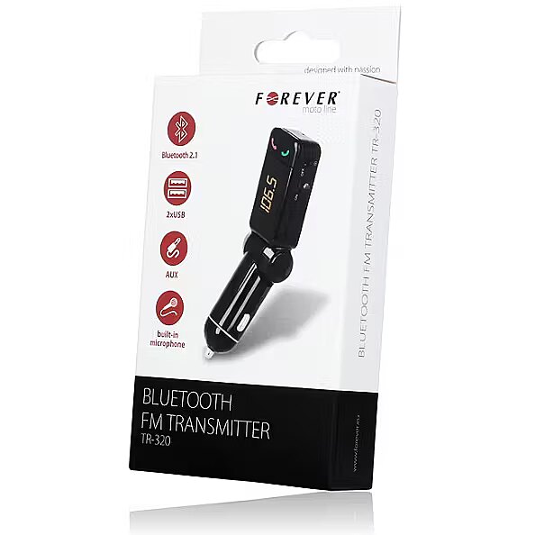 title_en - Forever TR-320 Bluetooth + EDR FM Transmitter For Car Radio / AUX / MIC / + Charger 2xUSB 2.1A