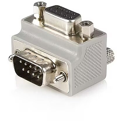 LongDesc - Add space for your DB9 serial port and connect a DB9 cable even in tight installation spacesThis Right Angle DB9 to DB9 Serial Cable Adapter features one Right Angled DB9 Male serial connector and one standard DB9 female serial connector - a convenient solution for connecting serial devices where connection space around the DB9 port is limited.Please note: There are two variations of this product, positioned differently to allow for easier connections based on the direction of right angle needed. Please see StarTech.com's GC99MFRA1 for more information.The StarTech.com Advantage