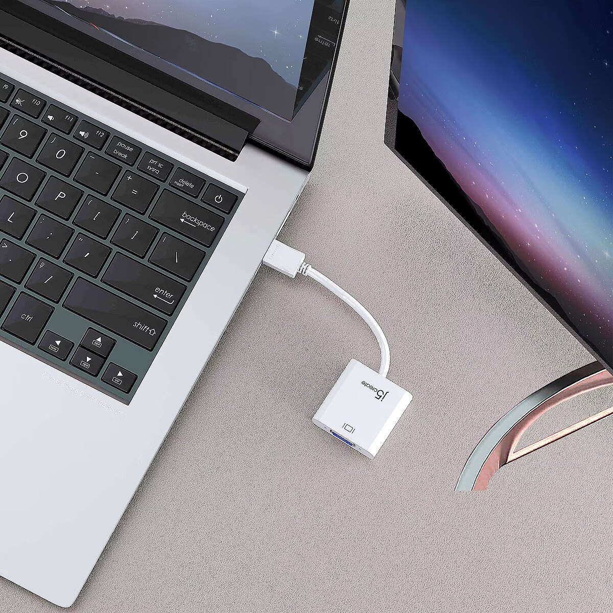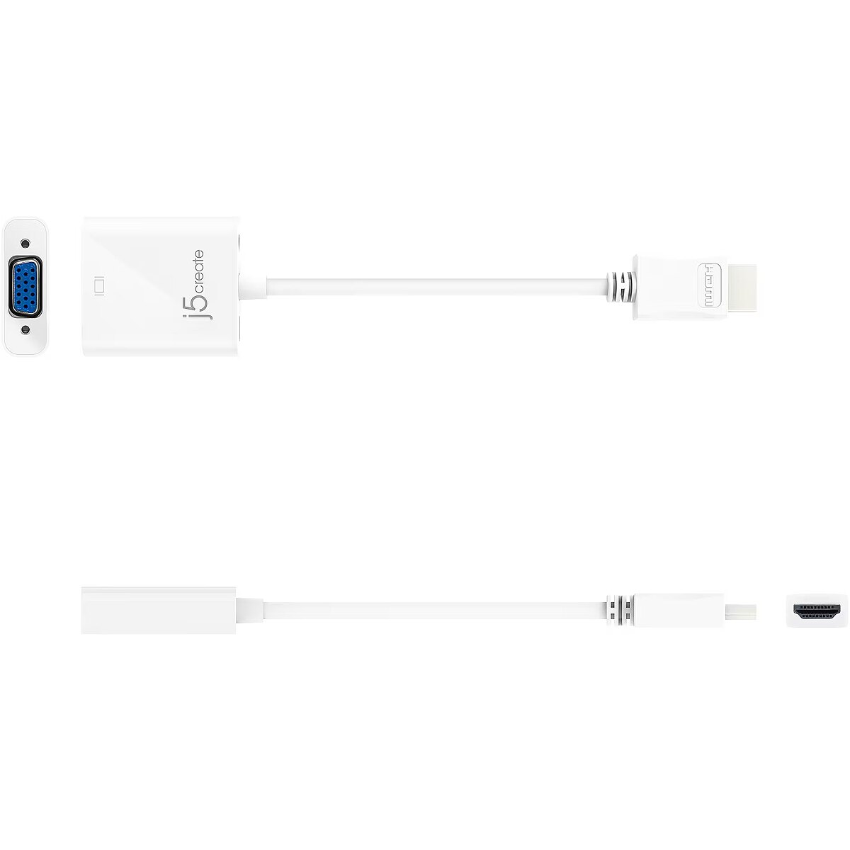 ShortSummaryDescription - j5create JDA213 HDMI™ to VGA Adapter, White, 0.1 m, HDMI, VGA, Male, Female, 1920 x 1080 pixels