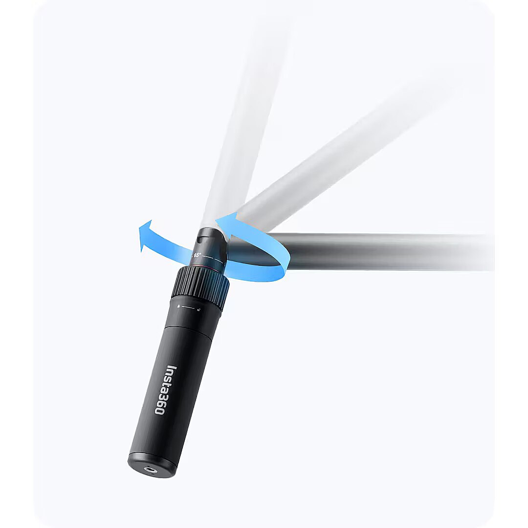 Description - Bullet Time Selfie Stick 2.0 A new twist on an Insta360 classic! Just swing it for instant Hollywood-style effects. Get unique perspectives and easier group shots with 65°, 75° and 90° shooting angles and a maximum length of 120cm. The two-in-one Bullet Time Component and selfie stick allow for easy switching between modes without any additional accessories. The selfie stick becomes invisible when used with a 360° camera. The bottom of the selfie stick features a 1/4" mounting point. Do not use additional accessories during high-intensity activities.