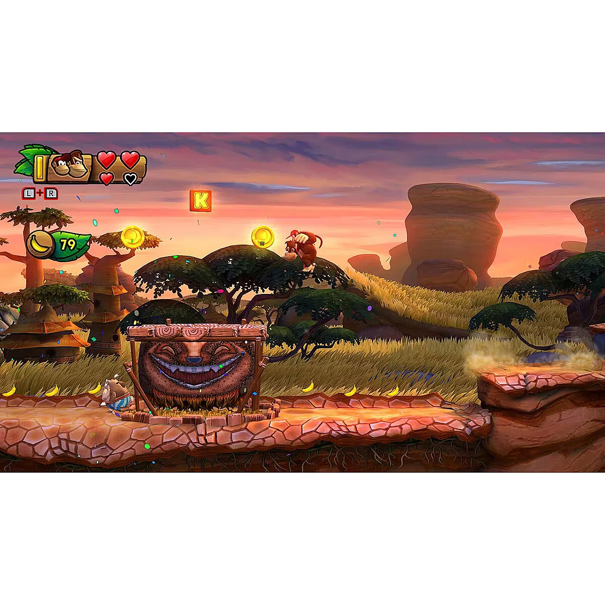 LongDesc - Piedzīvo kritikas atzinīgi novērtēto Donkey Kong piedzīvojumu, jo šī iemīļotā franšīze debitē Nintendo Switch™ ar banānu ķekaru jaunu funkciju. Šķērsojiet salas, kas pilnas ar platformām un nepārtrauktu darbību, kā klasiskie Kongi oriģinālajā spēlē, vai arī dažādojiet situāciju, spēlējot stāstu kā Funky Kongs jaunajā Funky režīmā!Arktiskie iebrucēji ir pārvērtuši Donkey Kong Island par savu personīgo saldēto cietoksni, un glābt situāciju ir tikai jūsu ziņā. Spēlējiet kā Donkey Kongs oriģinālajā režīmā un apvienojieties ar Diddy Kongu, Dixie Kongu un Cranky Kongu - katram ar unikālām spējām, lai pārvarētu platformas izaicinājumus un sala ienaidniekus.Ja vēlaties gūt pieejamāku pieredzi, sāciet spēli Funky režīmā, lai izbaudītu virkni spēles jauninājumu un jaunu galvenā varoņa iespēju - iespaidīgu sērfošanas sīmiku Funky Kongu! Viņa papildu sirdis un unikālās spējas padara spēlēšanas pieredzi vieglāku. Neatkarīgi no tā, kuru režīmu izvēlēsieties, jautrību papildinās bagātīgs kolekcionējamo priekšmetu klāsts un divu spēlētāju kopdarbs!