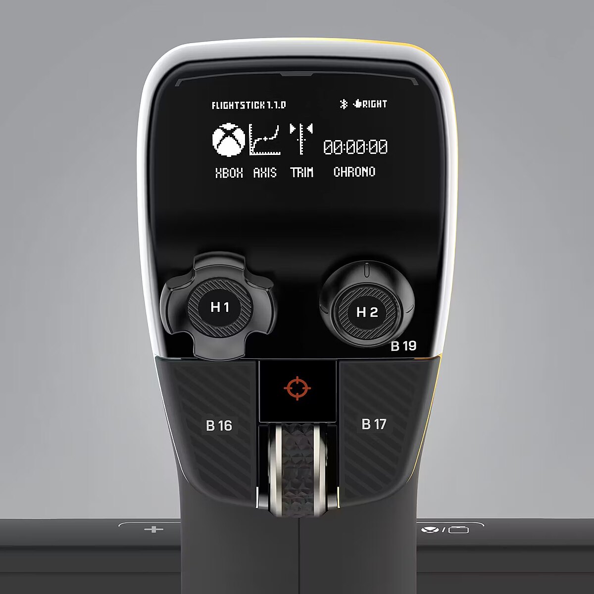 Learn the Flightstick controls and tune its performance to suit the game you're playing with an integrated OLED Flight Management Display. Additionally, you can adjust stick axis profiles, haptic response, trim wheel input, rudder lock and more. Ambidextrous design