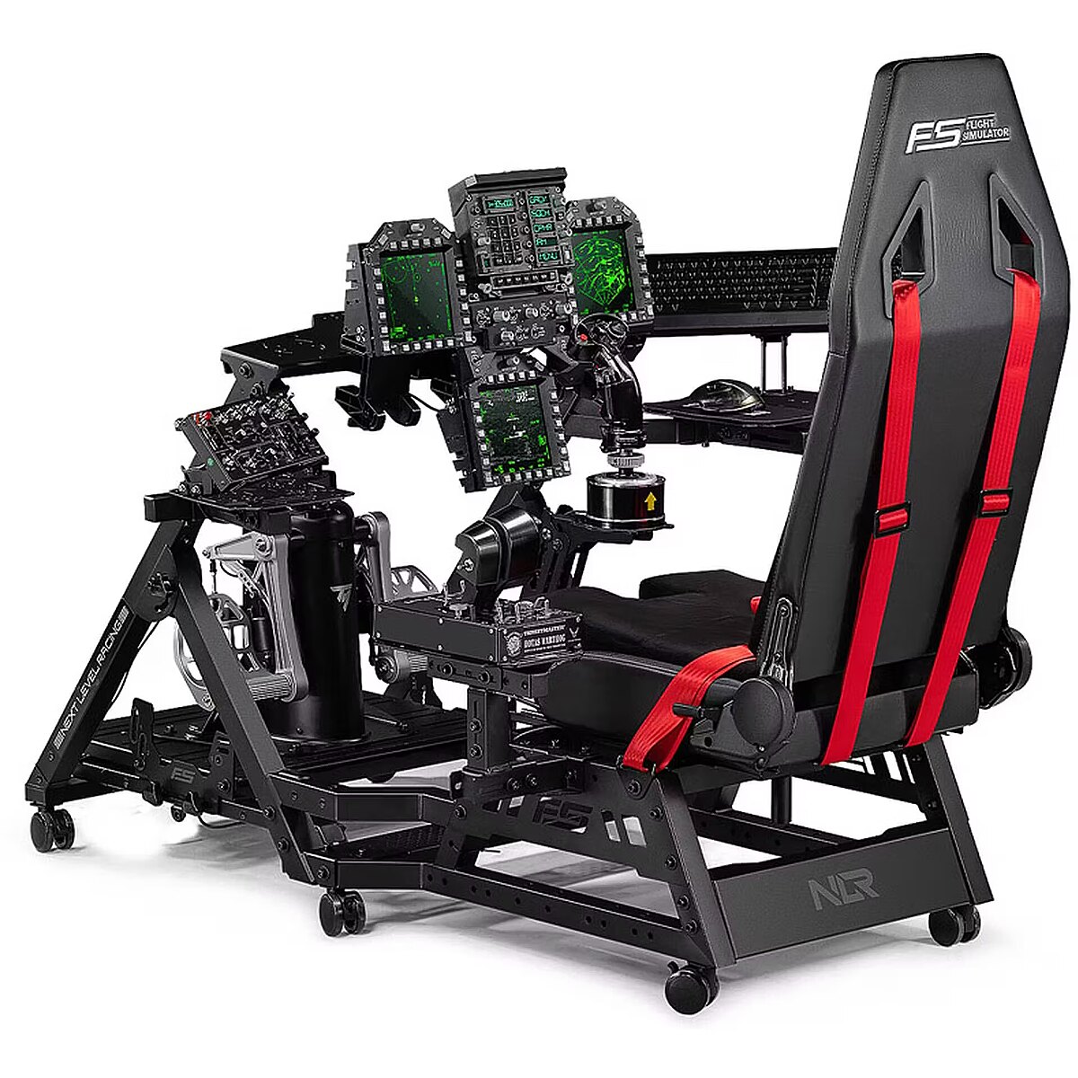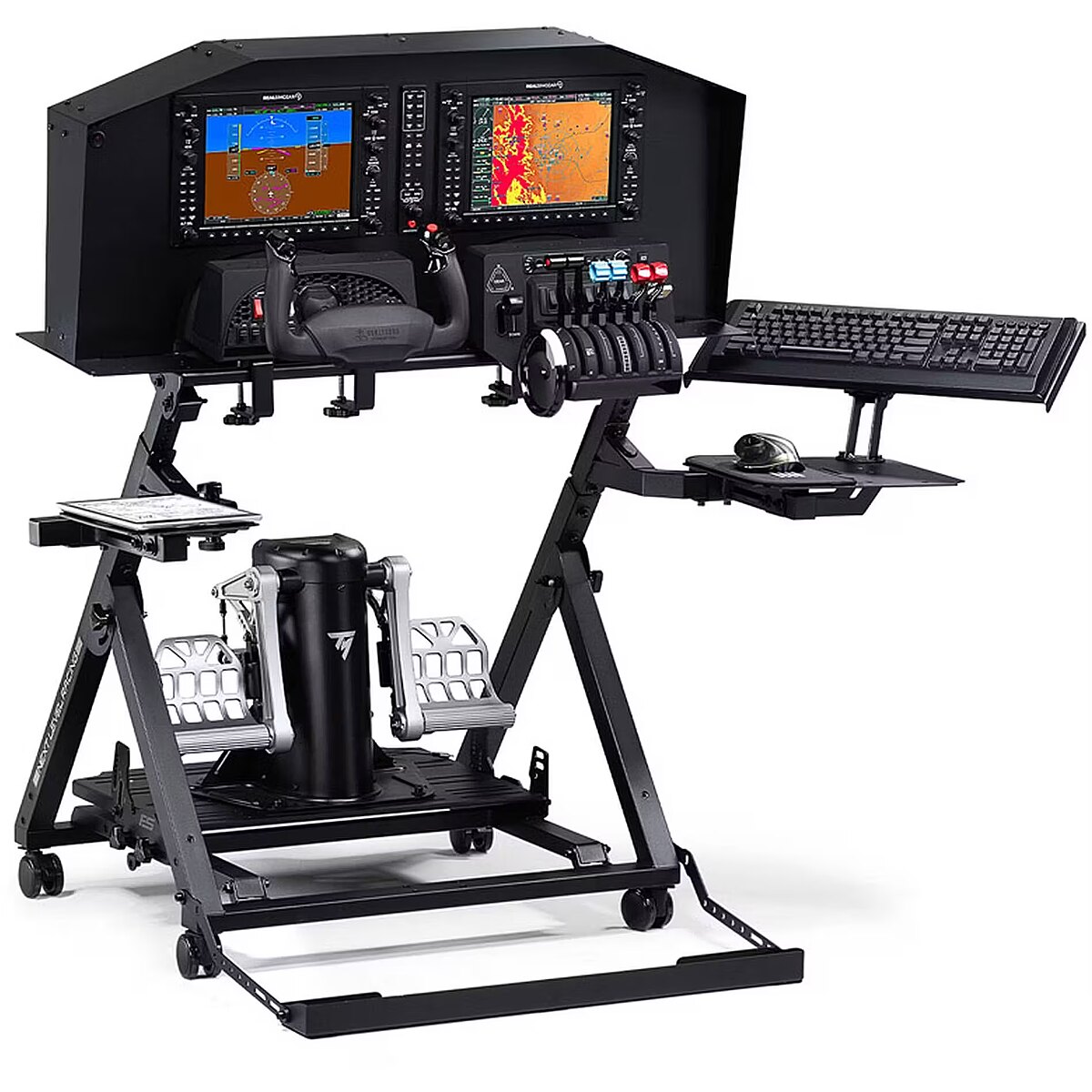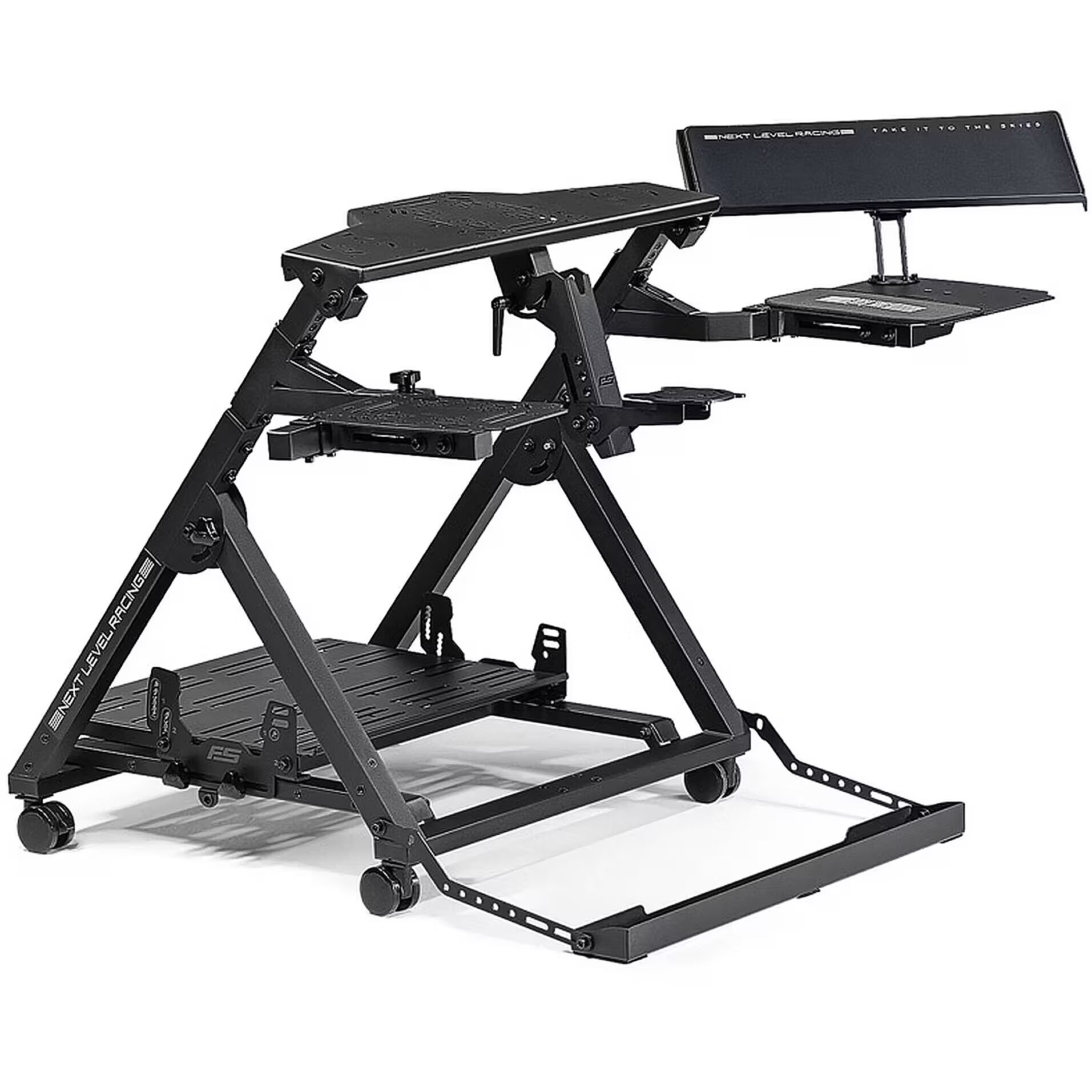 Citas funkcijas - Augstas profesionālās klases stends, kas atbalsta komerciālo, vispārējās aviācijas, kosmosa, helikopteru un militāro lidojumu konfigurācijas, lai nodrošinātu autentisku lidojumu simulācijas pieredzi. Papildināms līdz profesionāla līmeņa lidojuma pilota kabīnei, pievienojot Next Level Racing Flight Seat Pro Saderīgs ar tādiem zīmoliem kā Thrustmaster HOTAS Warthog, VPC Mongoos T-50CM2, WINWING Super Libra, Realsimgear G1000, Winwing Orion 2, lai nodrošinātu maksimālu daudzpusību. Paredzēts lietotājiem ar ierobežotu vietu, un tam ir transporta riteņi, lai to varētu viegli pārvietot. Lai nodrošinātu lielāku izturību, ir izmantoti augstākās kvalitātes materiāli.