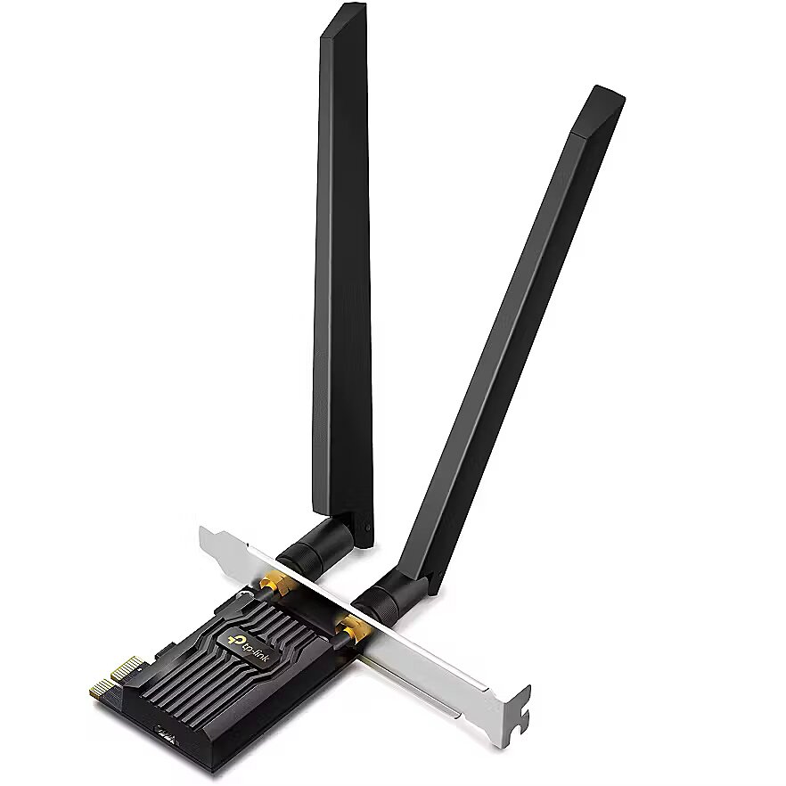 LongSummaryDescription - TP-Link AXE5400 Wi-Fi 6E Bluetooth 5.3 PCIe Adapter. Internal. Connectivity technology: Wired, Host interface: PCI Express, Interface: WLAN / Bluetooth. Maximum data transfer rate: 2402 Mbit/s, Top Wi-Fi standard: Wi-Fi 6E (802.11ax), Wi-Fi band: Tri-band (2.4 GHz / 5 GHz / 6 GHz). Antenna type: 2x2, Product colour: Black