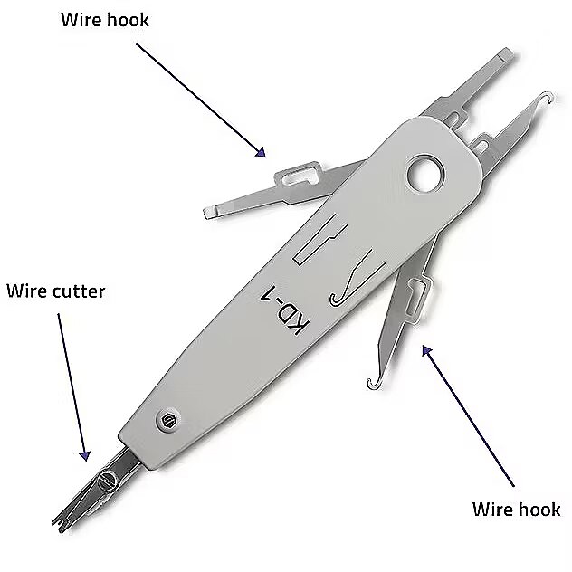 The striking end of the crossover cutter is manufactured from hardened steel, which guarantees not only durability, but also precision in the process of driving the cable strands into the terminals. The housing is made of ABS plastic, which further increases the durability of the tool and ensures comfort of use in various working conditions. An additional feature that makes working with the crossover knife easier are the two pull-out elements located on the side of the device. These elements make it much easier to push and pull the cables, which translates into convenience of use and reduced installation time.