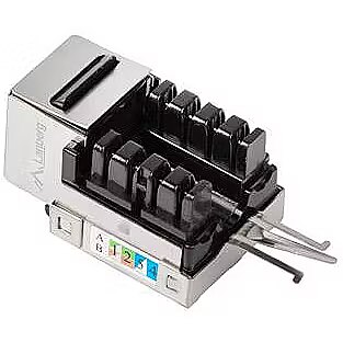Apraksts - FTP RJ45 cat.6 keystone ligzdu var uzstādīt jebkurā adapterī keystone savienotājiem ar izmēriem (augstums x platums) 16,10x14,50 mm, piemēram, adapteros 45x45 ligzdām, elektroiekārtu rāmjos, moduļu paneļos, pateicoties kam šī moduļa lietojumu saraksts ir ļoti plašs. LAN ligzdai ir IDC savienotāja vāciņš un 568A/B krāsains savienojuma secības apzīmējums. Ir iespējams savienot kabeļus 568B un 568A secībā. Universālie slotu savienojumi ir saderīgi ar LSA rīku. Izgatavots uz PCBA iespiedshēmas plates bāzes.