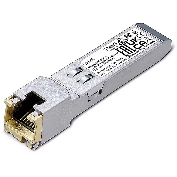 LongSummaryDescription - TP-Link 10G BASE-T RJ45 SFP+ Module. SFP transceiver type: Copper, Maximum data transfer rate: 10300 Mbit/s, Interface type: RJ-45. Product colour: Silver, Housing material: Metal, Form factor: SFP+. Input voltage: 3.3 V. Compliance certificates: CE, Federal Communications Commission (FCC), RoHS. Quantity per pack: 1 pc(s)