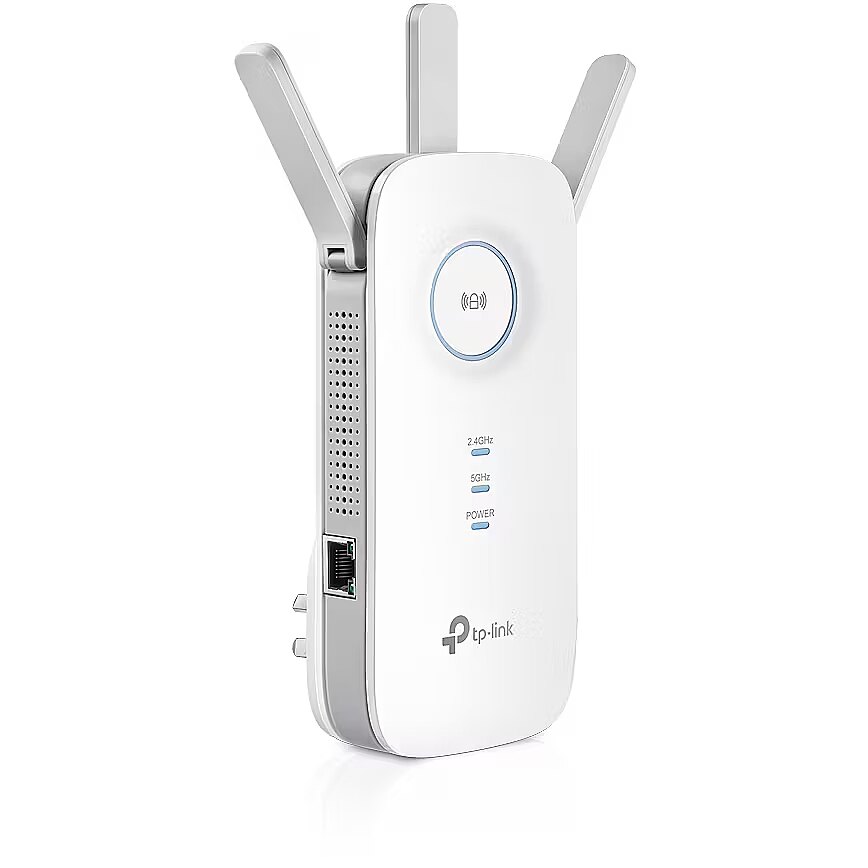 LongSummaryDescription - TP-Link RE450. Type: Network transmitter & receiver, Data transfer rate: 1300 Mbit/s, Ethernet LAN data rates: 10,100,1000 Mbit/s. Antenna type: External, Transmitting power (CE): 2.4 GHz ≤20dBm, 5 GHz ≤23dBm. Cabling technology: 10/100/1000Base-T(X), Networking standards: IEEE 802.11a, IEEE 802.11ac, IEEE 802.11b, IEEE 802.11g, IEEE 802.11n, IEEE 802.3, IEEE 802.3ab,..., Wi-Fi standards: 802.11a, Wi-Fi 5 (802.11ac), 802.11b, 802.11g, Wi-Fi 4 (802.11n). Product colour: White, Quantity per pack: 1 pc(s). AC input voltage: 100 - 240 V, AC input frequency: 50/60 Hz, Power consumption (max): 9 W