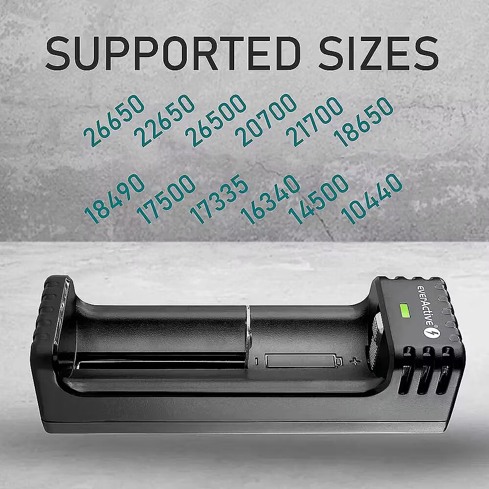 Description - everActive LC-100C to prosta, a jednocześnie bardzo niezawodna ładowarka na jedno ogniwo / akumulator. Urządzenie wykorzystuje mikroprocesor do sterowania procesem ładowania. Ładowarkę wyróżnia w tym segmencie relatywnie wysoki maksymalny prąd ładowania, który wynosi 1000 mA. Ładowarka LC-100C pozwala na naładowanie typowego ogniwa 18650 2200 mAh w zaledwie 2,5h.