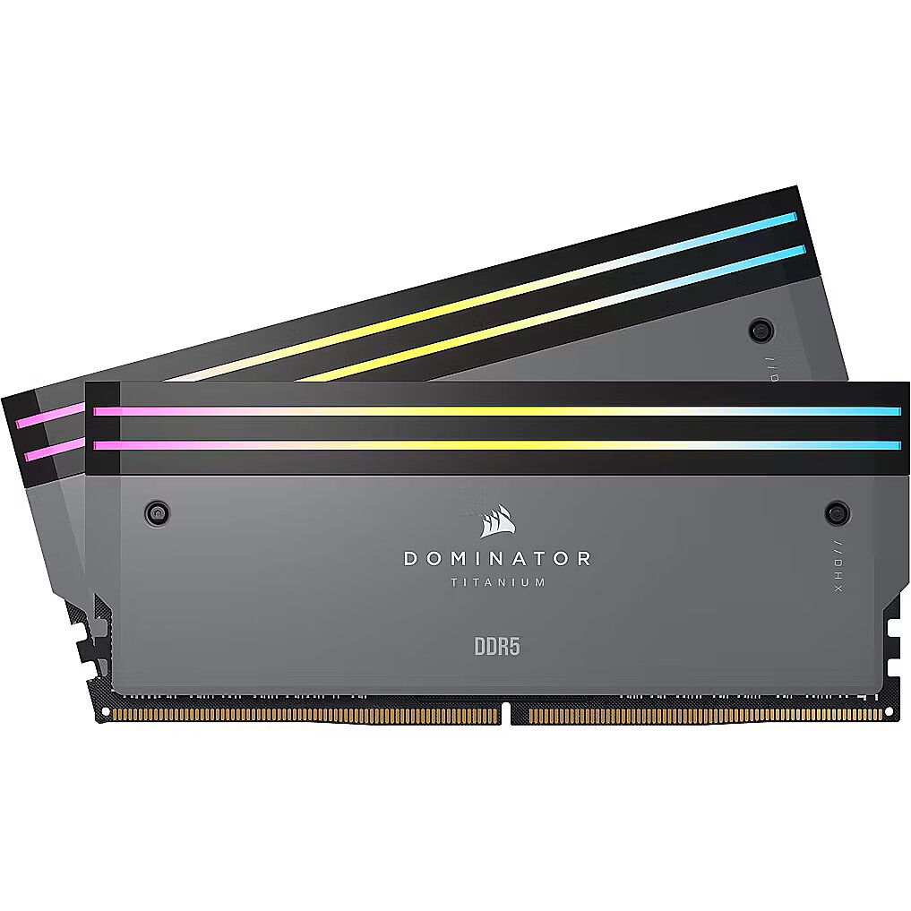Description - CORSAIR DOMINATOR TITANIUM DDR5 Memory combines clean, refined styling with superior forged aluminum construction and vibrant RGB lighting for a premium memory experience. Tightly-screen high-frequency, low latency memory chips backed by patented CORSAIR DHX cooling ensure your system can handle complex tasks faster and smoother than ever. Preset and custom dynamic RGB lighting profiles via CORSAIR iCUE Murals software make the most of the 11-zone RGB LEDs featured on each module, while setting your memory to its optimal speed is easy thanks to support for AMD EXPO. With its elegant styling and premium construction, DOMINATOR TITANIUM sets the standard by which others are judged.