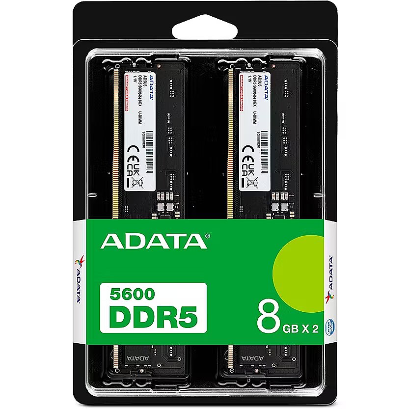 LongSummaryDescription - ADATA DDR5 5600 U-DIMM. Component for: PC/Server, Internal memory: 8 GB, Memory layout (modules x size): 2 x 4 GB, Internal memory type: DDR5, Memory clock speed: 5600 MHz, Memory form factor: 288-pin DIMM, CAS latency: 45