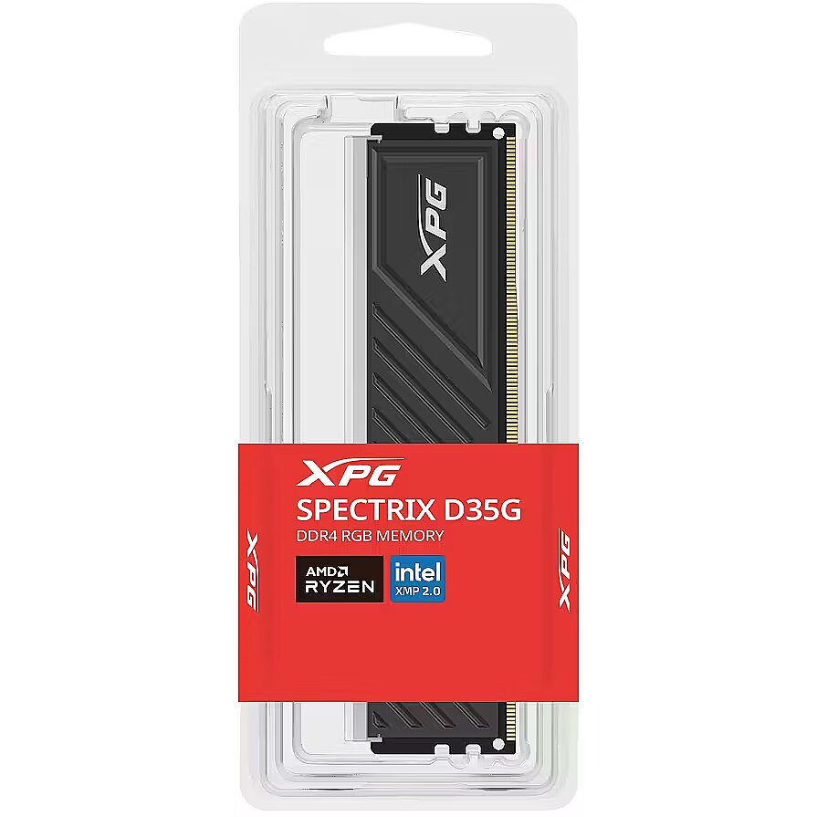 LongDesc - Compact Low-Profile Heatsink DesignSPECTRIX D35G's composed and understated triangular outline is specifically designed for gamers with unique personalities. The D35G's small heatsink allows for easy installation in small chassis.Top Quality RAM for High DurabilityThe SPECTRIX D35G has undergone strict selection and screening procedures, passing reliability and compatibility tests, and delivers a strong and durable product that epitomizes the highest of quality!RGB Your WaySet the RGB lighting the way you want it. Choose from different effects (static, breathing, and comet) or sync the lights with your favorite jams via Music Mode. All this can be done through RGB control software from all the major motherboard brands.Create Personalized Lightshow with XPG PrimeXPG Prime lighting control software not only allows you to set unique DRAM lighting effects, you can also sync all Prime supported XPG RGB products to create imaginative light shows and shape your own Prime ecosystem.Works with the Latest AMD PlatformsADATA memory have been tested and verified to work with the latest AMD platforms for hassle-free compatibility and excellent overclocking performance.Supports Intel® XMP 2.0Intel® Extreme Memory Profile (XMP) 2.0 makes overclocking a snap and enhances system stability. Instead of adjusting individual parameters in BIOS, you can do it right through your PC's operating system.