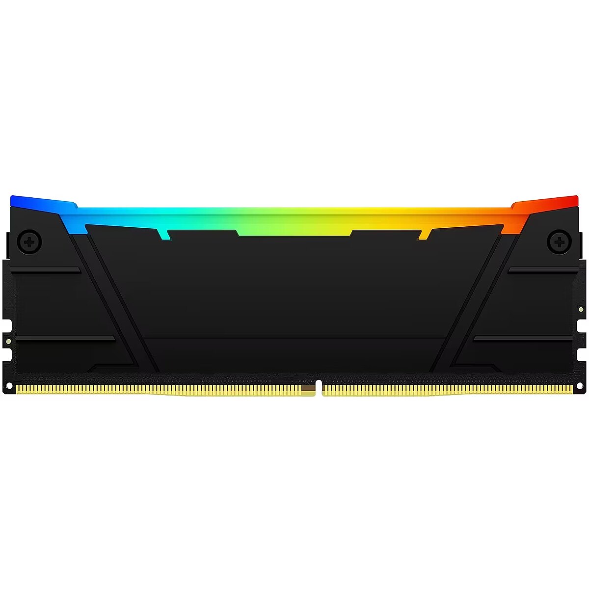 LongDesc - Kingston FURY™ Renegade DDR4 RGB* is the ideal upgrade for the power user who wants cutting-edge performance, with stylish RGB in their AMD- or Intel-based system. 10 LEDs create dynamic RGB lighting with Kingston FURY's patented Infrared Sync Technology™ for smooth, coordinated effects. Put in hours for work or play, crank up your frame rate, improve your workflow and edit gameplay in a flash thanks to speeds of up to 4600MT/s[*]* paired with quick latencies. The intense, stylish two-tone black heat spreader with black PCB is for fun and function to keep your system cool. Available in single module capacities of 8GB–32GB and kits of 2, 4 and 8 with capacities of 16GB–256GB. [Kingston FURY Renegade DDR4 RGB is Ready for AMD Ryzen, and Intel® XMP Certified] or XMP Ready.Stunning RGB styleBring your workstation to life with smooth, stunning RGB lighting effects*Patented Kingston FURY™ Infrared Sync Technology™RGB lighting stays synced thanks to Kingston FURY's Infrared Sync TechnologyPowerful aluminium heat spreader displays smooth RGB effectsThe two-tone black aluminium heat spreader and black PCB highlight the stunning RGB effects to keep your rig running and looking sharp.Intel XMP Certified or Read profilesIntel Extreme Memory Profile technology makes it possible to overclock with ease. Simply select one of the built-in, hand-tuned profiles in your BIOS to get the benefits of overclocking.Ready for AMD Ryzen™Get memory that’s Ready for Ryzen and will seamlessly integrate with your AMD-based system.