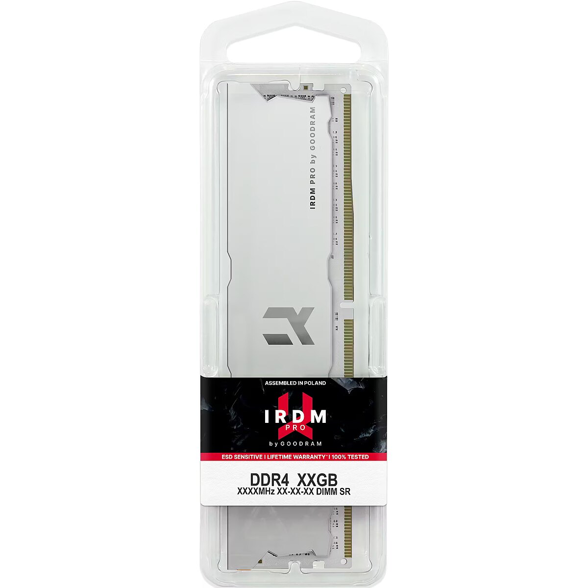 LongDesc - IRDM PRO DDR4 is a perfect solution designed for “next gen” processors, which had their premiere at the end of 2020. Half-matte, white heatsink and white PCB, is an unusual color combination on a wide scale, thanks to which IRDM PRO – Hollow White are in line with the trends of custom PCs, which are more and more often built on white on components.Enter the gameAll IRDM PRO memory modules are manufactured in Poland on the basis of highly selected components and undergo multi-stage quality tests before they set off into the world. The Quality Control Department makes sure that each module is perfectly prepared for any conditions, that is why they are covered by a lifetime warranty.Highest quality = lifetime warrantyAll IRDM PRO memory modules are manufactured in Poland (Europe) with highly selected components and undergo a multi-stage quality tests before setting off for a trip to retail stores. The Quality Control Department ensures that each module is perfectly prepared for many years of use, hence we guarantee our users a lifetime warranty.Minimalistic designIRDM PRO modules are equipped with low-profile, improved heat sinks, dissipating heat and ensuring stable operation of the computer. Modules are available in two unique color versions: Pitch Black, where the heatsink is painted with matt black paint, and Hollow White with a white heatsink on the PCB in the same color. The minimalist design is especially suitable for computers, new trends in custom built PCs.