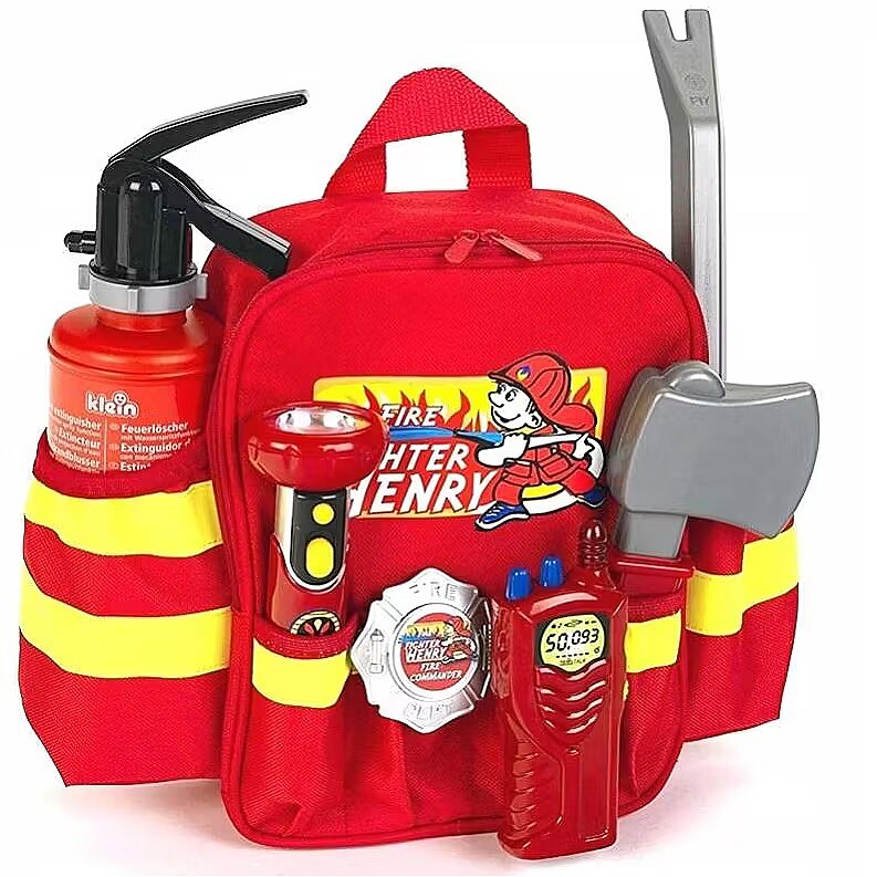 Description - Klein 8932 Backpack fire extinguisher A super proposition from Theo Klein GmbH for all children fascinated by the work of firemen or policemen. Now every child has the chance to feel like a real uniformed officer. Sets with firefighter or police accessories will allow them to play out scenes from life and imagination. All pieces of equipment have been made with attention to detail. The high quality of workmanship and the very high degree of resemblance to the real equipment will make for fantastic play. The entire Klein toy series includes hats, helmets, warning lollipops or individual fire extinguishers, as well as extensive sets containing complete police officer or firefighter equipment. The backpack fire extinguisher is one of the hits of this series. Made very solidly from thick plastic. The whole set, of course, comes in red (the colour most associated with firefighters) with yellow accessories. Water can be poured into the tank, which the child puts on the back, and the gun connected to the tank by a hose can be used to extinguish a fire with water! What could be more fun? The backpack's straps are made of fabric and are adjustable in length. The Klein brand is world-famous for products made with attention to detail, top-quality materials and attractive design. The brand's toys are ideally suited to the tastes of small and larger users. Articles bearing the Klein brand guarantee great fun and are characterised by a long service life.