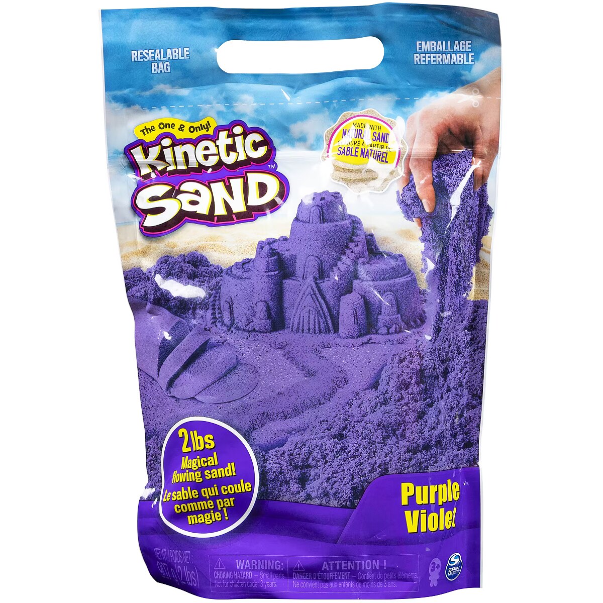 LongSummaryDescription - Kinetic Sand , 2lbs Purple Play Sand, Moldable Sensory Toys for Kids, Resealable Bag (Packaging May Vary), for Ages 3 and up. Product type: Children's kinetic sand, Recommended age (min): 3 yr(s), Product colour: Purple, Gluten free