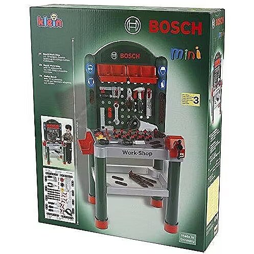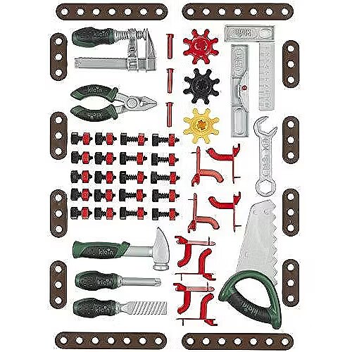 Apraksts - Bosch darbnīca ar 79 gab. Lielisks komplekts jaunajiem meistariem ir rotaļu kopija īstiem Bosch darbarīkiem, ko radījis THEO KLEIN. Komplektā ir 75 elementi, piemēram, zāģis, āmurs, skava, vīles, atslēgas, knaibles, skrūves un izturīgs plaukts, uz kura visu var pakārt. Rotaļlietas ir izgatavotas no augstākās kvalitātes plastmasas, kas garantē to izturību. Spēlēšanās ar šo aprīkojumu attīstīs bērna radošumu un sniegs izklaidi stundām ilgi.