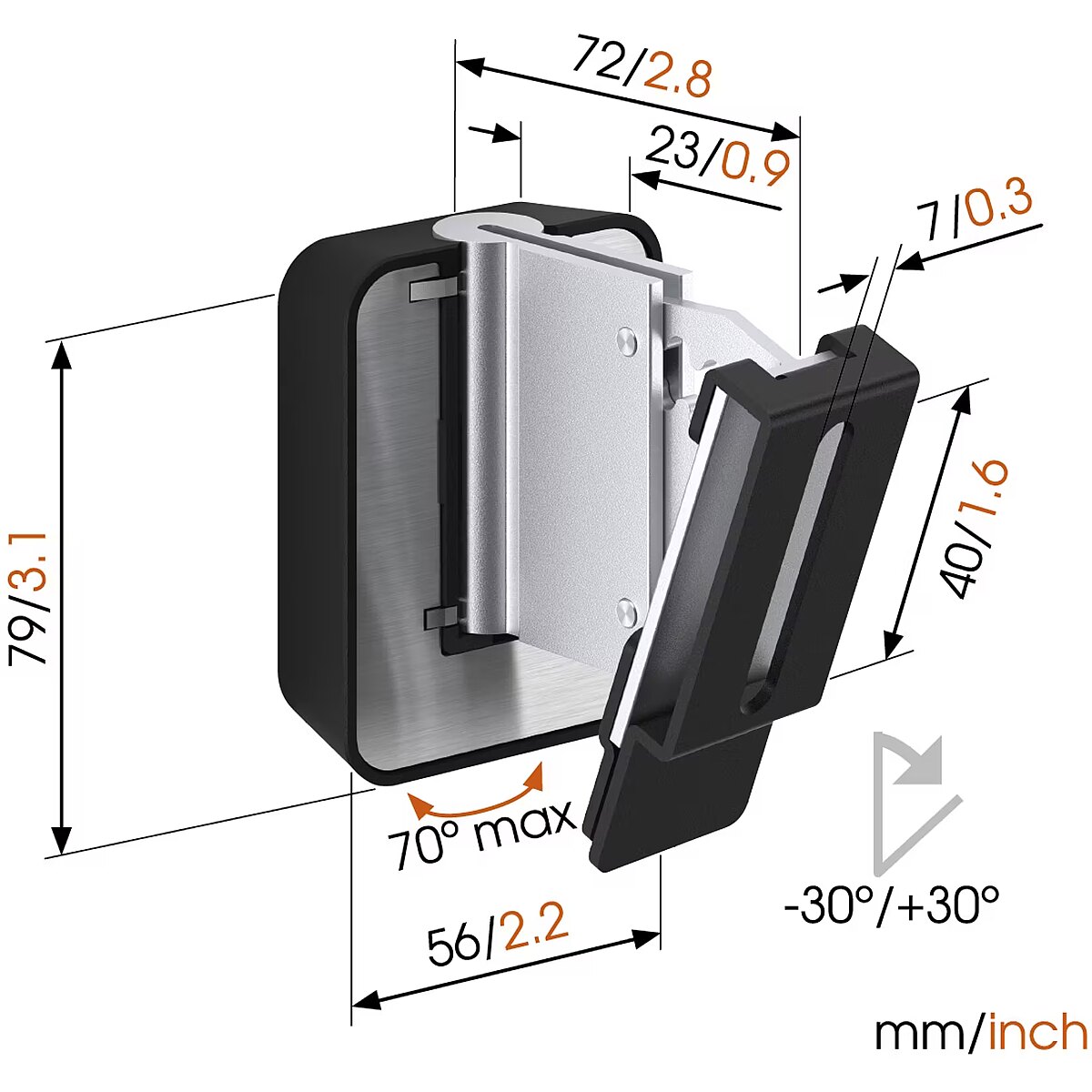 Tehniskās detaļas > Pagrieziena leņķis - 70 °